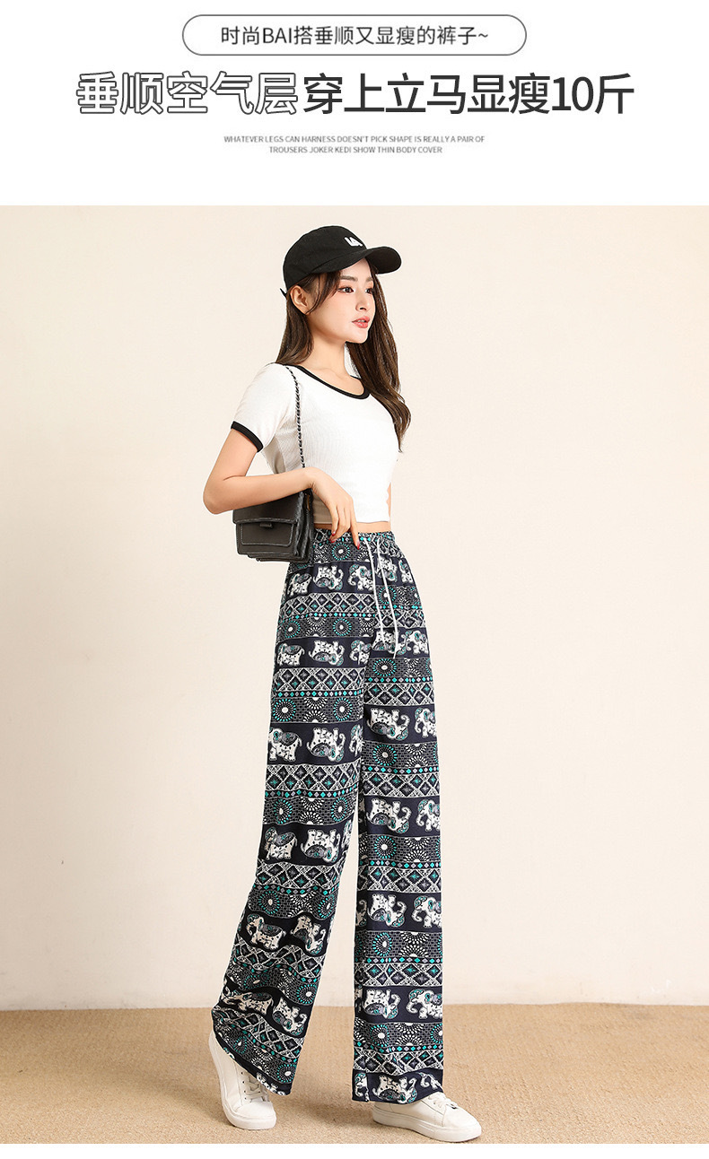 Внешняя торговля широкие брюки со слоном на весну и лето с высокой талией дозирующие свободные прямые повседневные брюки Таиланд новые женские