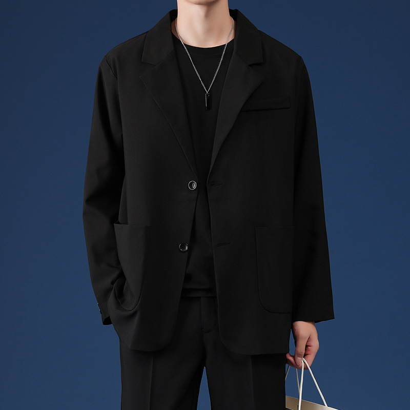 Мужской повседневный блейзер на весну и осень, свободный крой, в корейском стиле, модный, универсальный, элегантный, комплект из двух предметов.