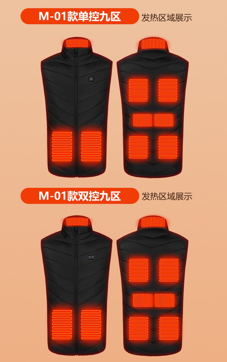 Трансграничный в наличии зимний отопительный жилет девять интеллектуальное Отопление оптом 9 Электрический отопительный жилет Мужская и женская отопительная одежда постоянная температура