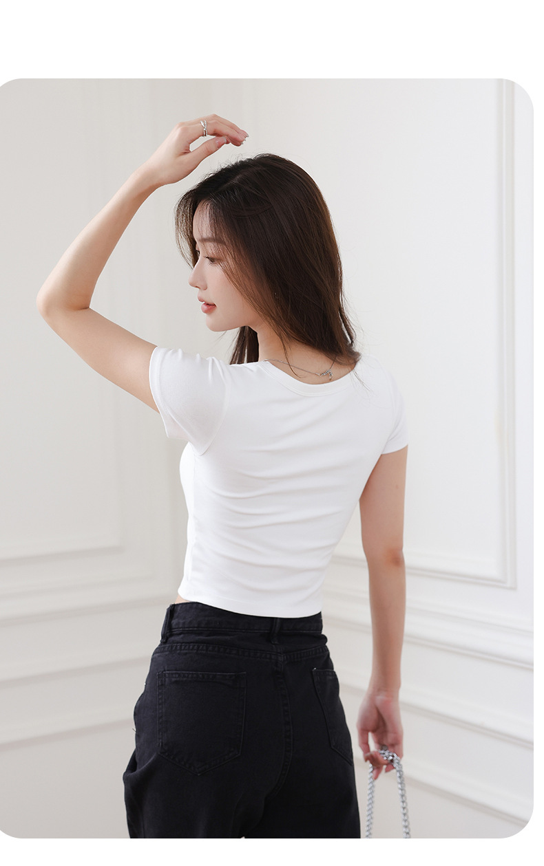 Женская чашка-Бюстгальтер Цельный внутренний короткий топ Маленькая футболка с круглым вырезом Бюстгальтер Базовая рубашка Пупок короткий