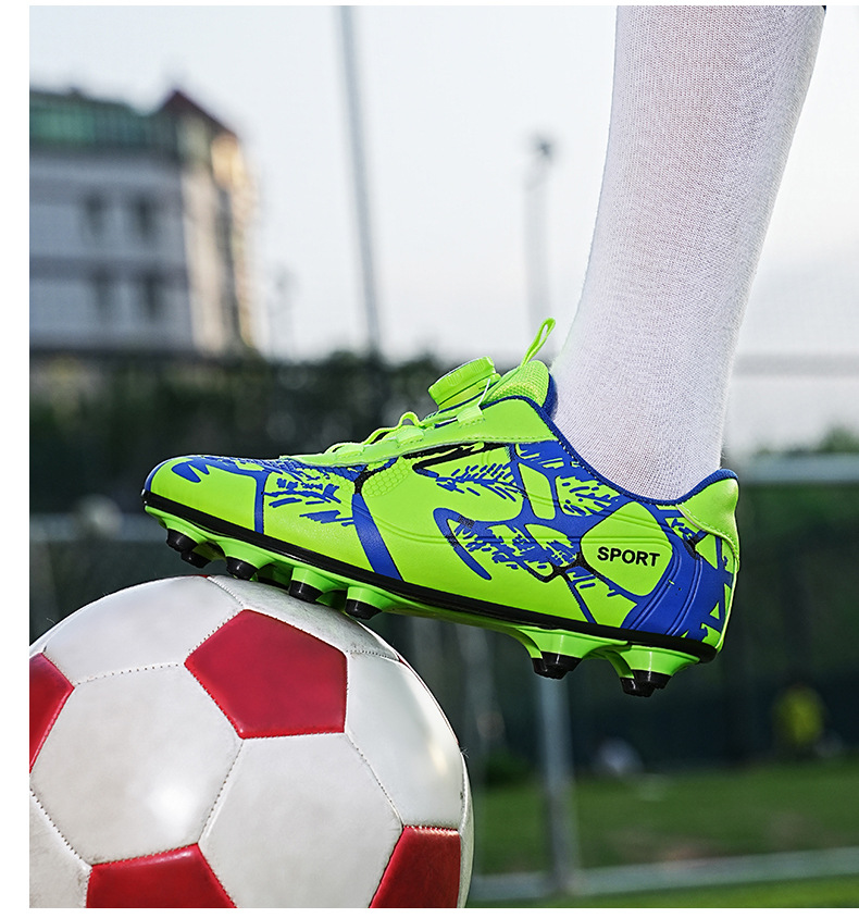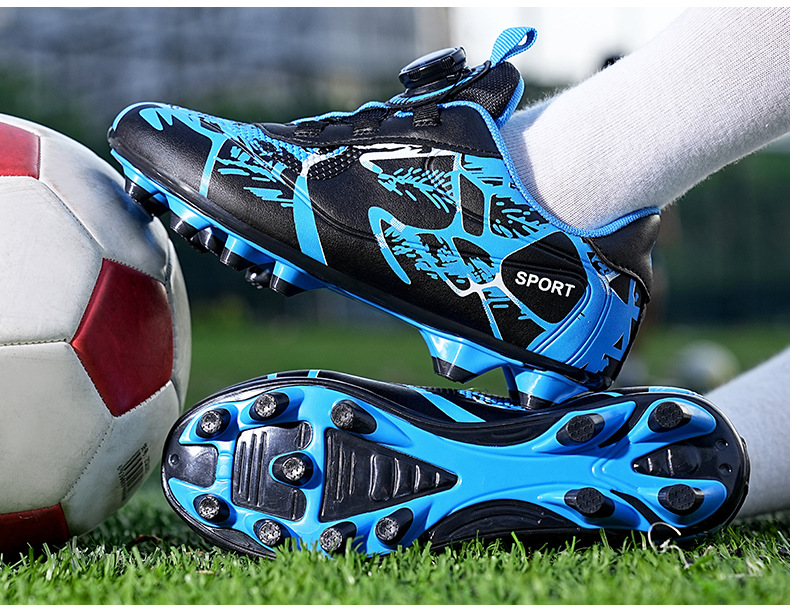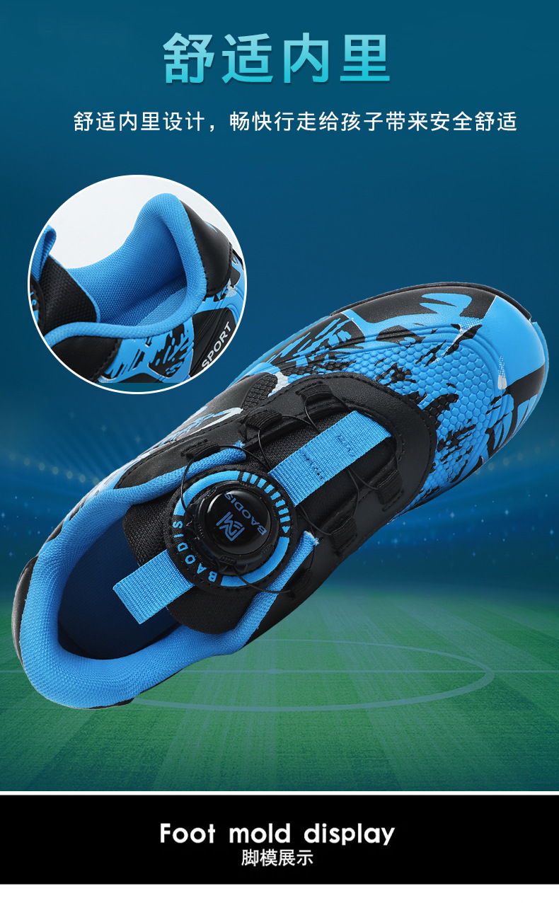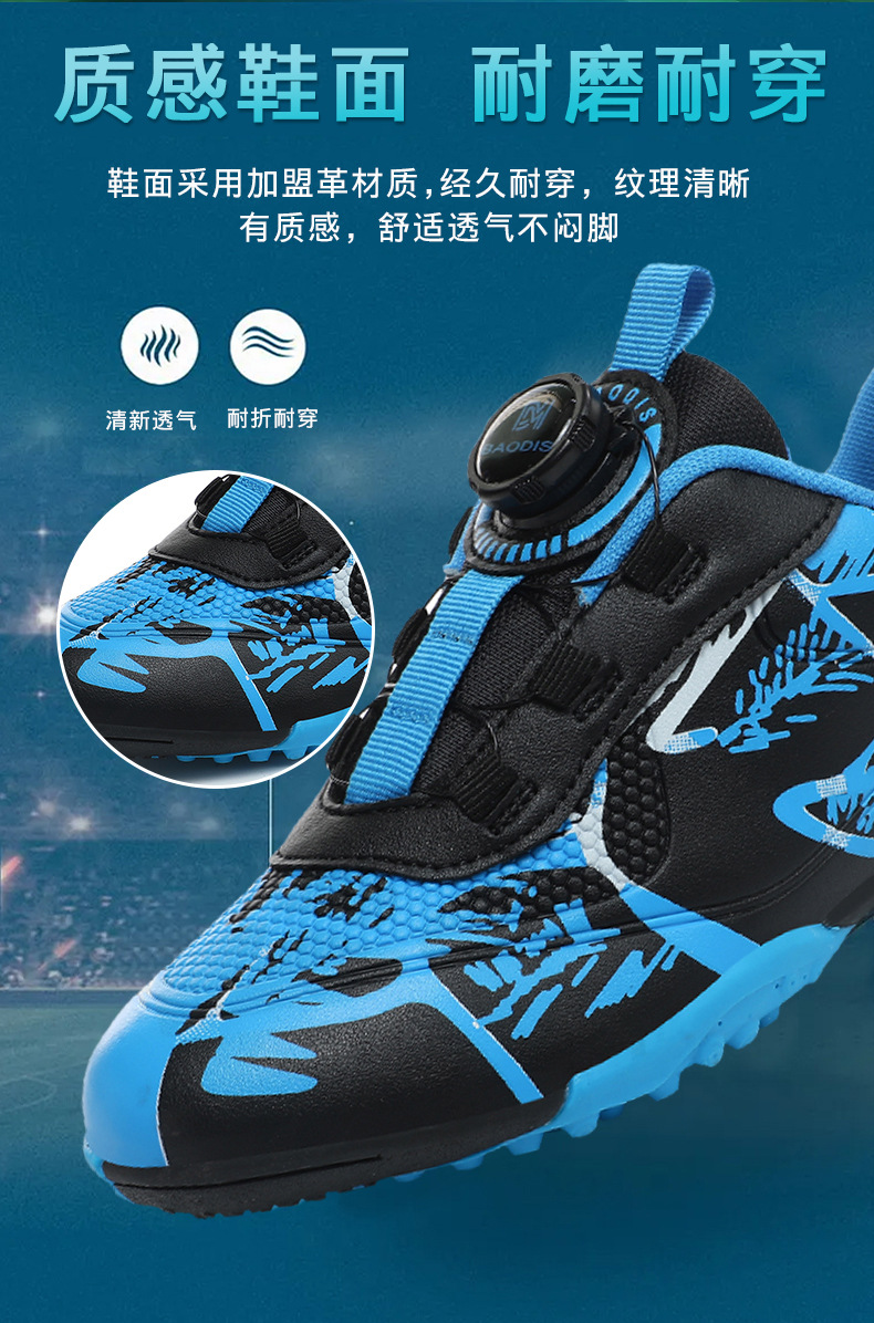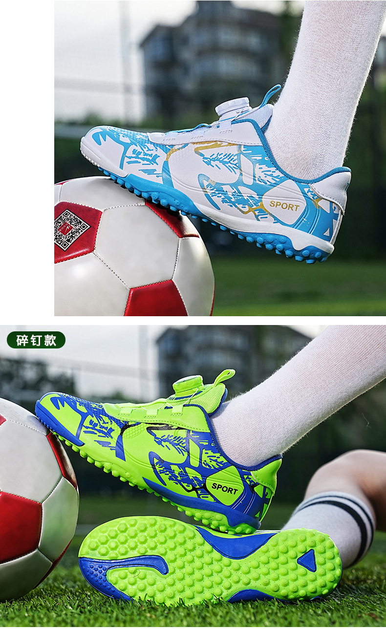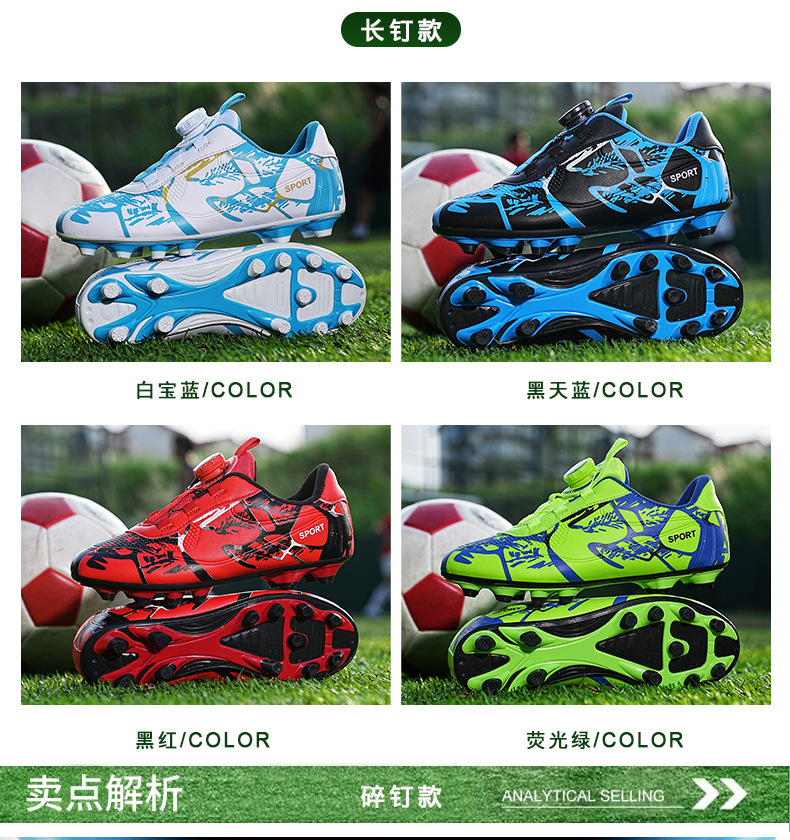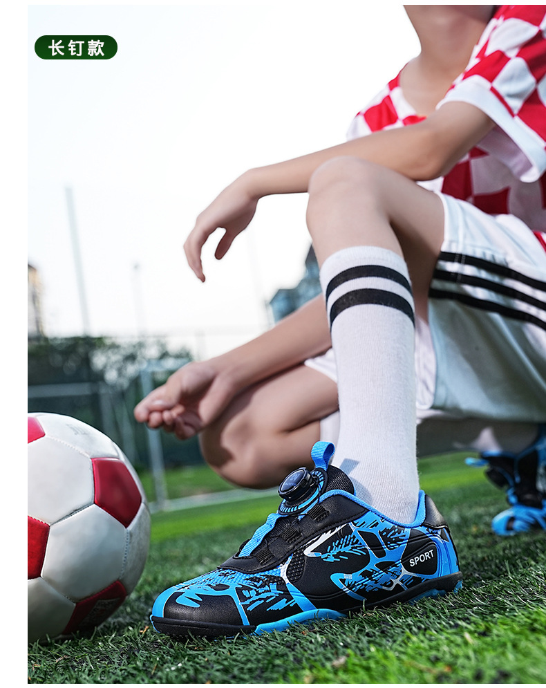 Детские футбольные бутсы 2023 года с поворотной застежкой, спортивная обувь для учащихся начальной школы, шиповки TF, длинные шипы, тренировочные кроссовки, легко гнущиеся.