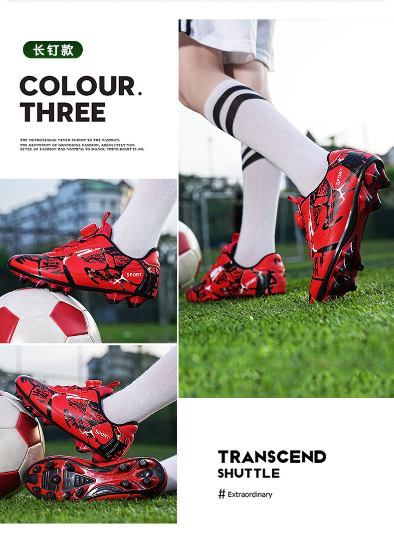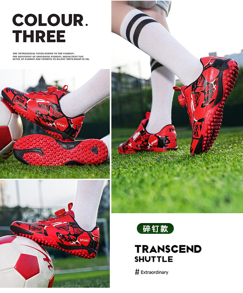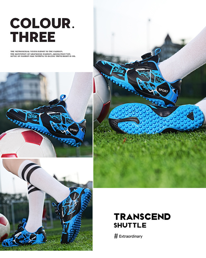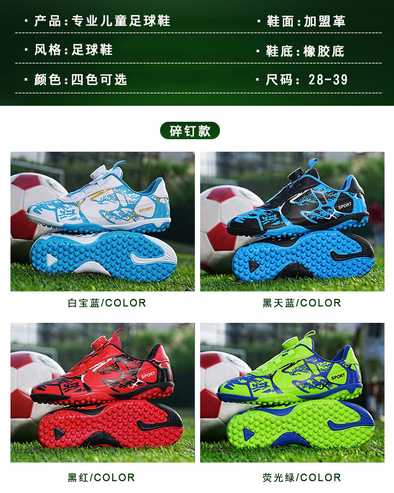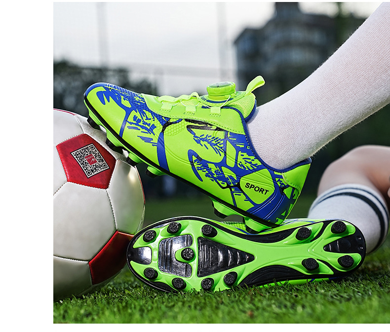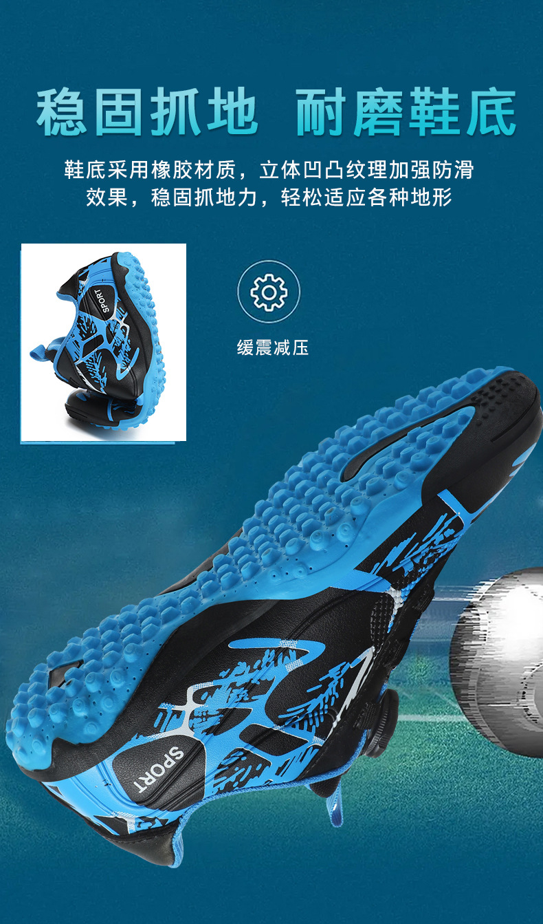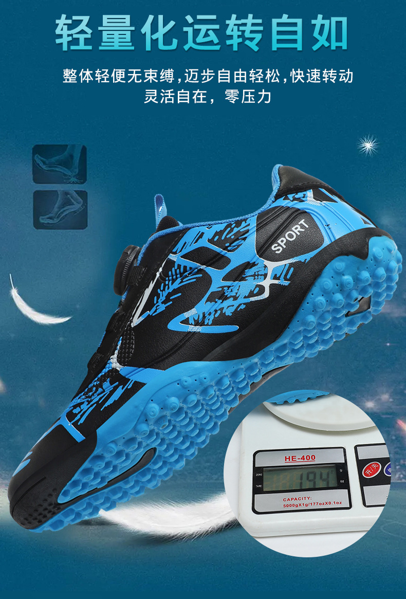 Детские футбольные бутсы 2023 года с поворотной застежкой, спортивная обувь для учащихся начальной школы, шиповки TF, длинные шипы, тренировочные кроссовки, легко гнущиеся.