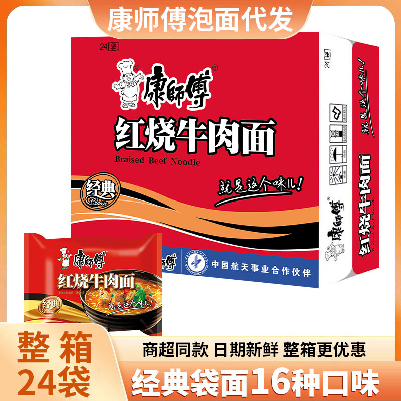 Лапша быстрого приготовления Master Kong, классическая лапша с тушеной говядиной, 24 пакетика, острая маринованная капуста и креветки, смешанный вкус, быстрый приготовленный поздний ночник