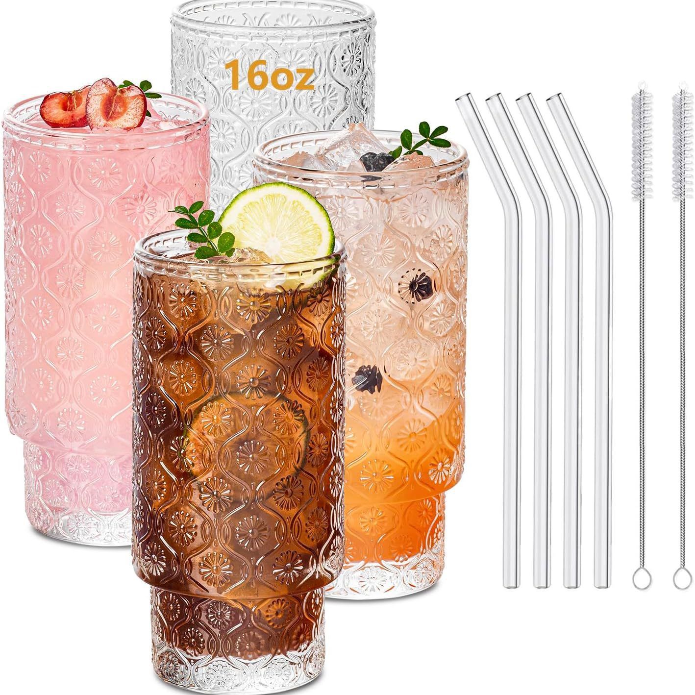 Amazon 16 унций Вертикальная Штабелируемая чашка стеклянный напиток с крышкой с соломенной чашкой сока напиток креативное стекло
