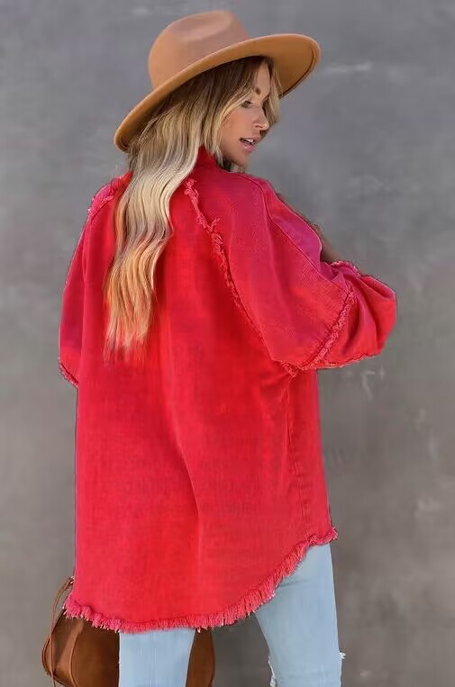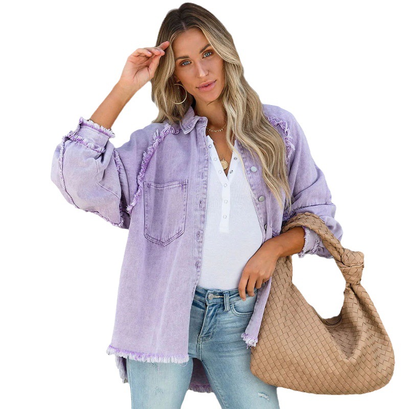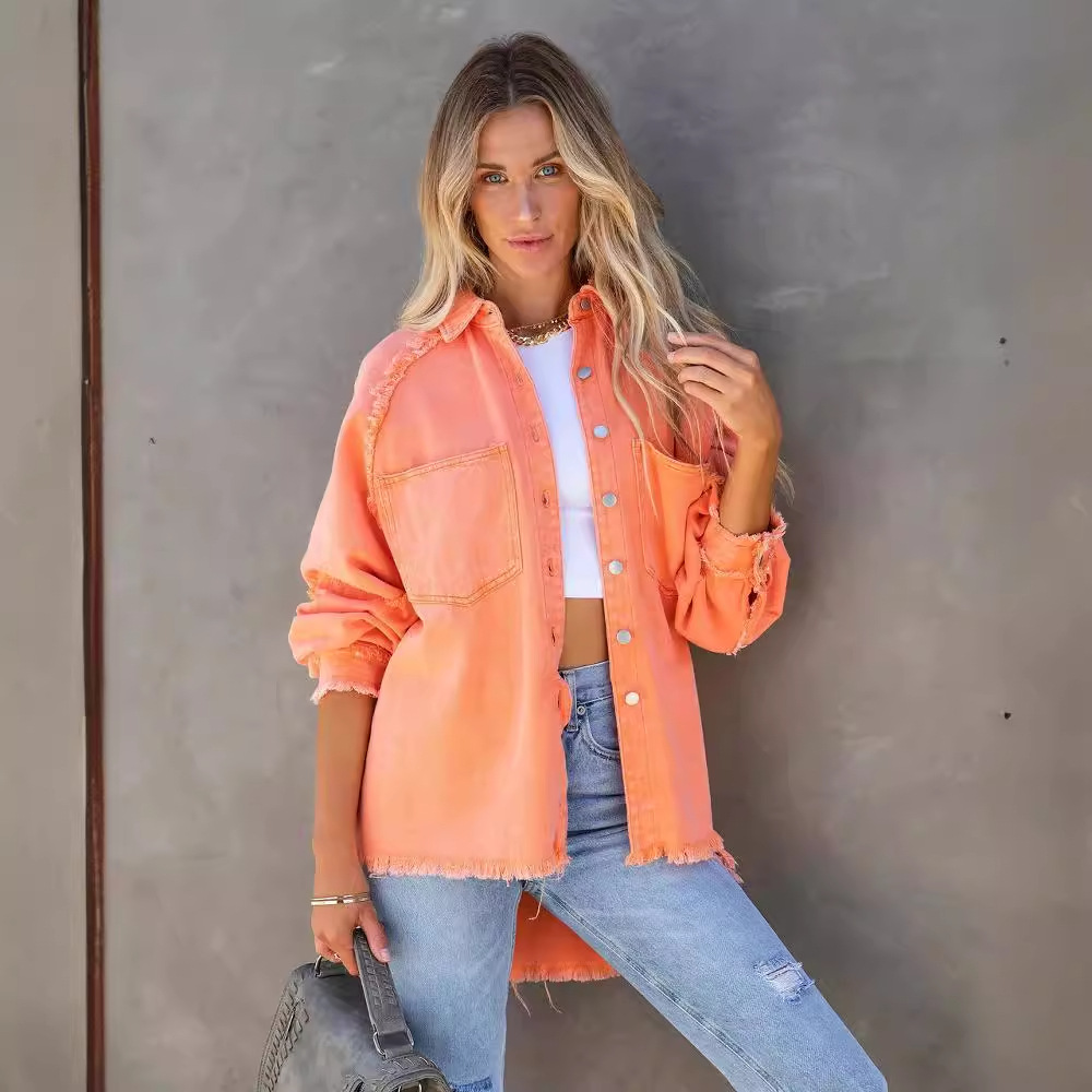 Европа и США осень и зима Новый длинный Свободный Грубый шить карман трансграничной Амазонки рубашка джинсовое пальто женщин