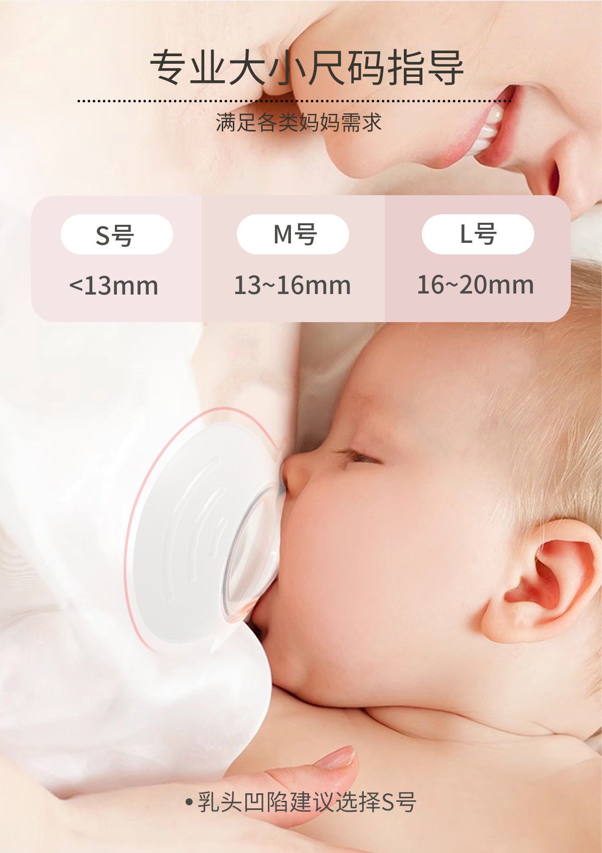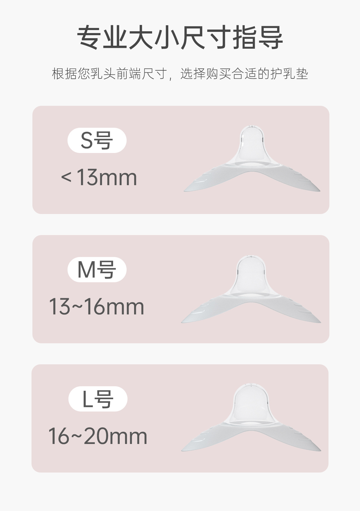 缓解哺乳不适、疼痛。三个尺寸,满足不同大小乳头需求。
