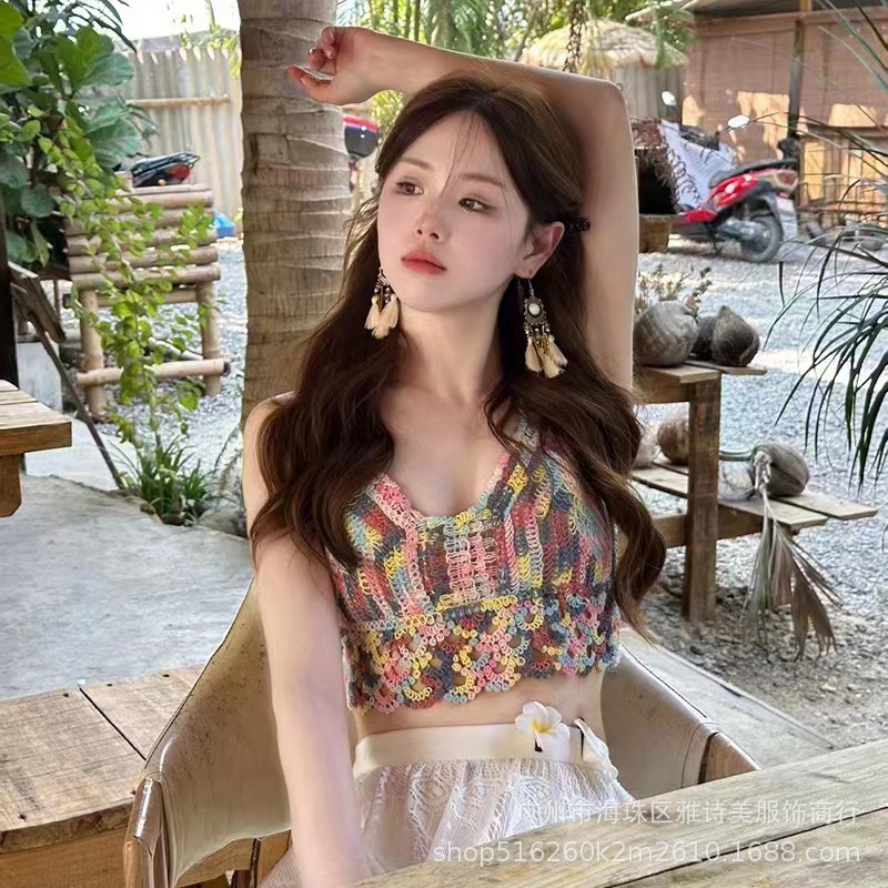 Французский стиль, Уникальный Шикарный маленький слинг, жилет с цветочным принтом, женский летний дизайн, чувство внутренней одежды, Топ