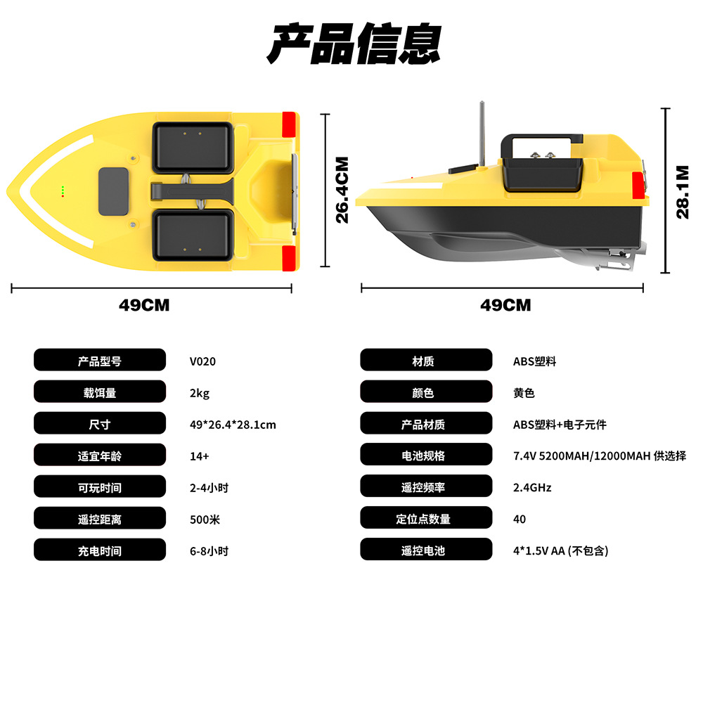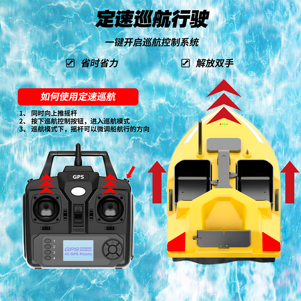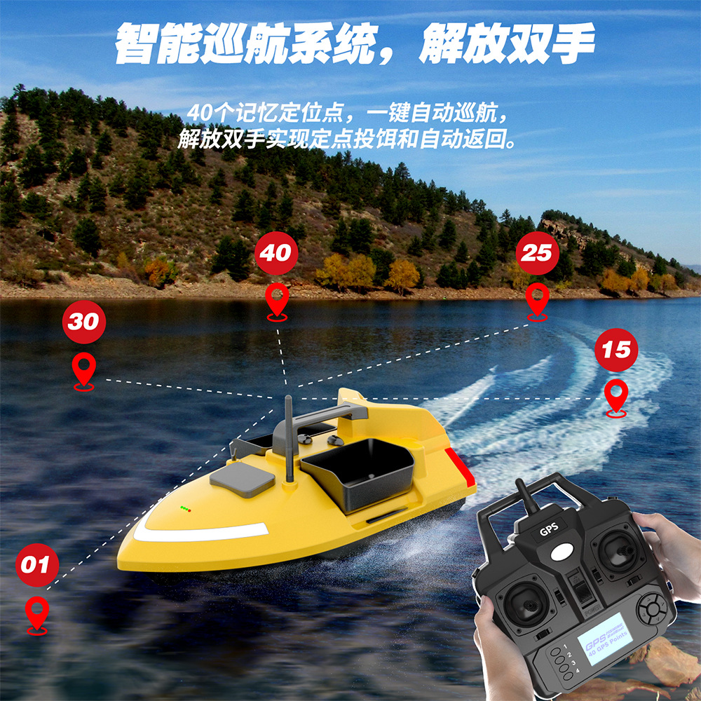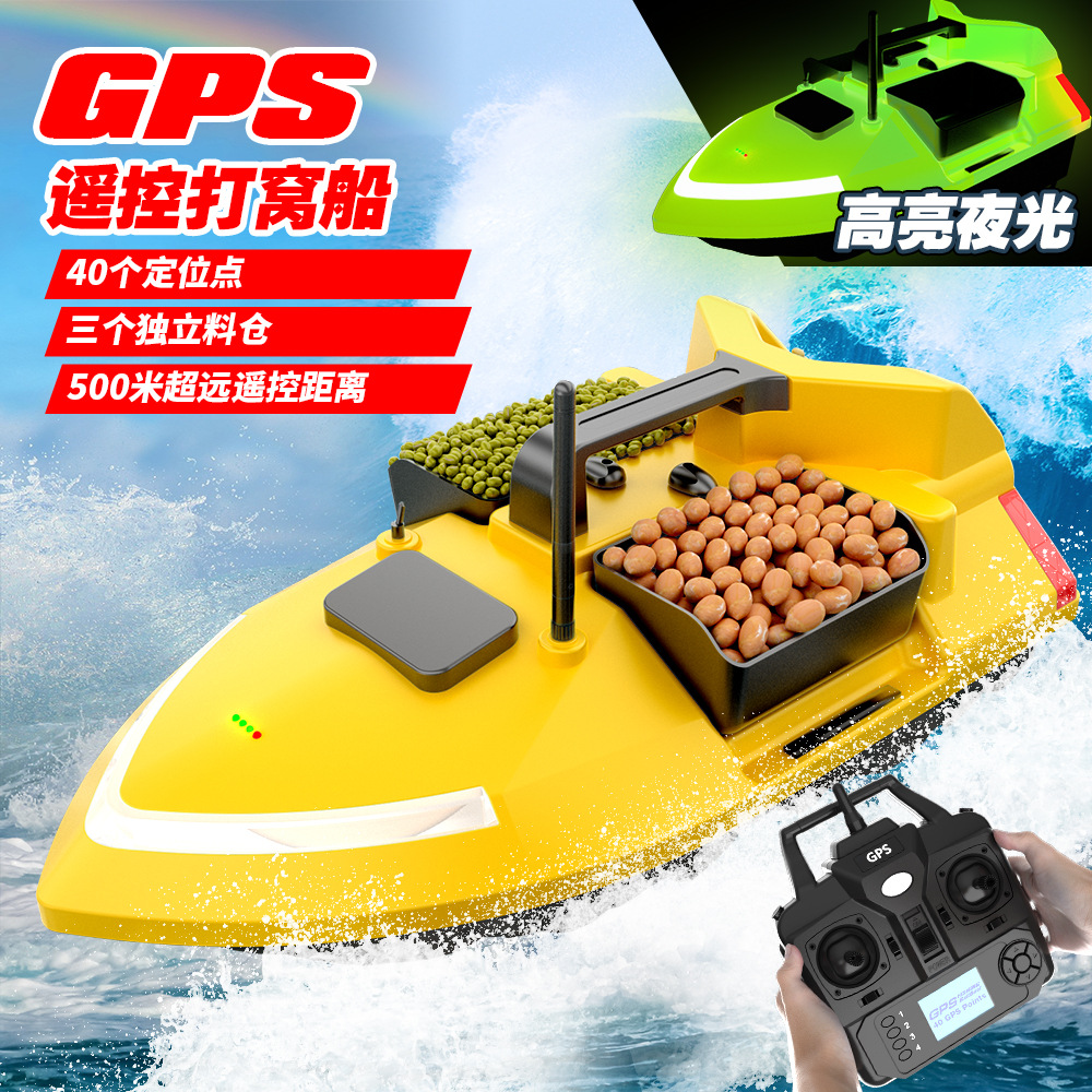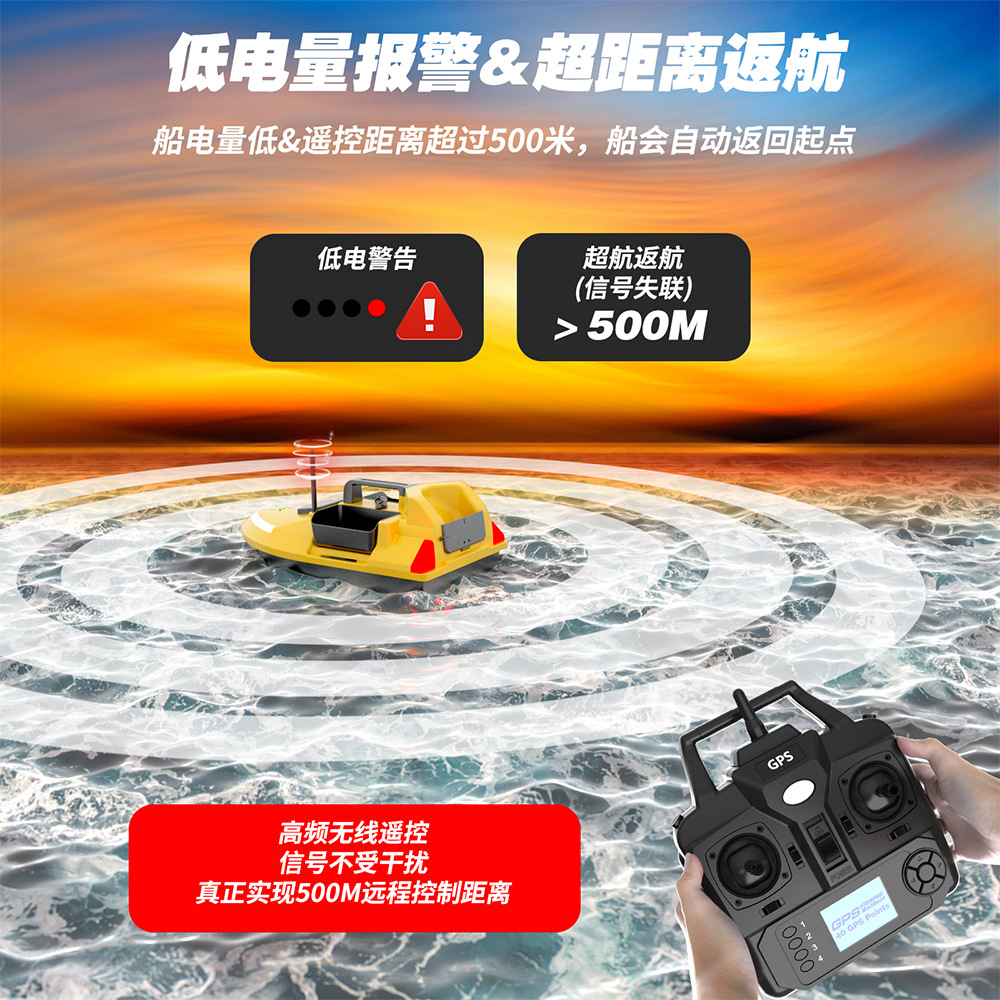 Рыболовное судно 500m года выпуска с GPS, оснащенное светящимся высокоскоростным двигателем, трехсекционной 40-точечной системой позиционирования, желтым пультом дистанционного управления, высокоскоростной батареей и длительным временем автономной работы.