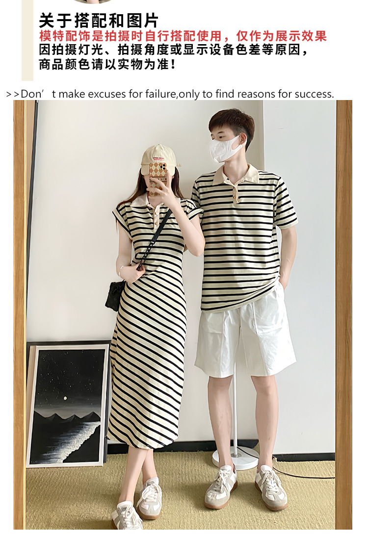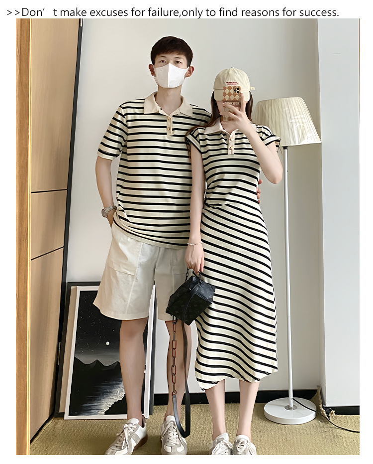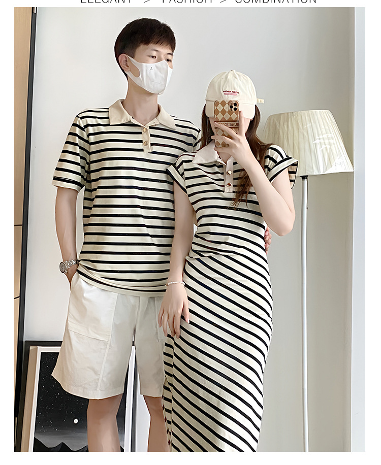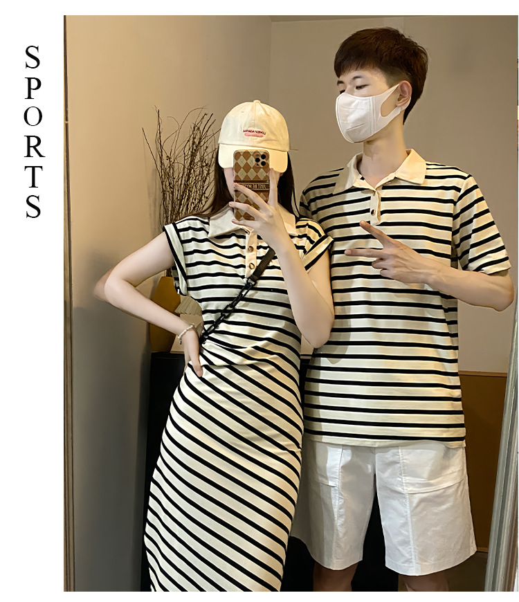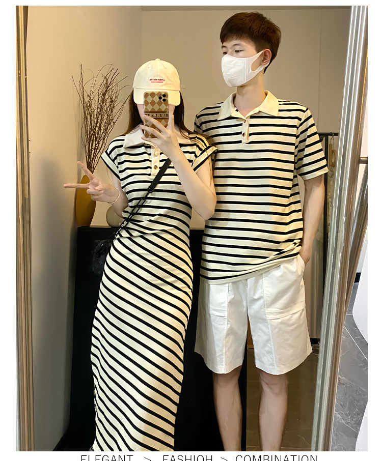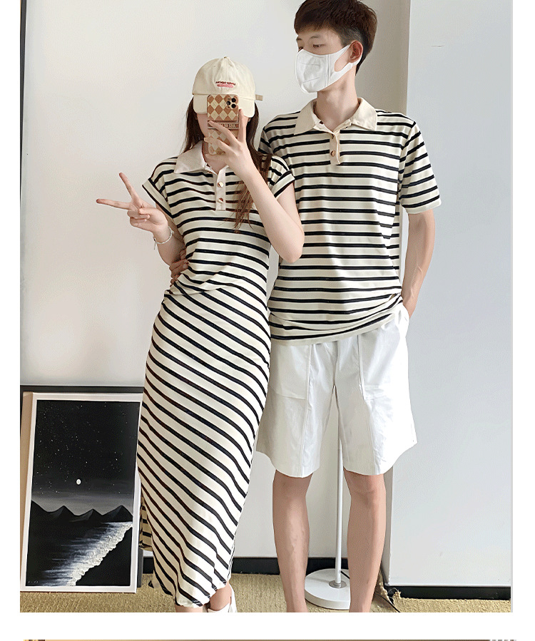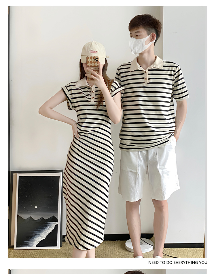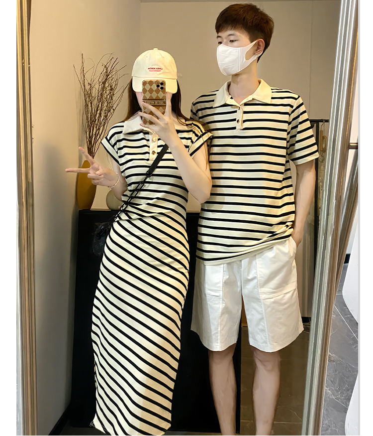 2023 летнее платье для пары с короткими рукавами, черное абрикосовое Полосатое женское платье для колледжа, мужское платье и платье