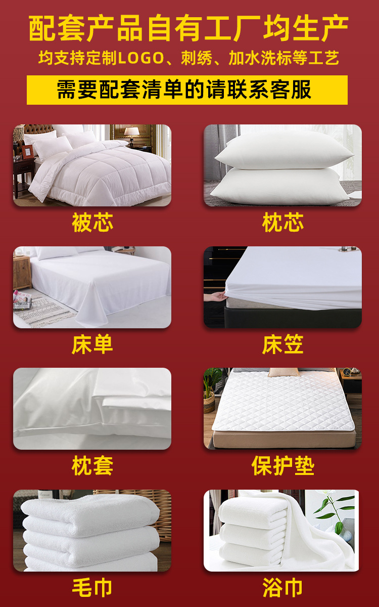 40*40 хлопок (экспресс-отель); 60*40 хлопок более мягкий (высококлассный отель/проживание в семье); 60*60 полиэстер хлопок смесь против морщин; 80*80 Jet Gong Satin (5-звездочный отель); 40*40 хлопковые три см атласные полосы; 60*40 хлопковых трех см атласных полос; 120 супер-роскошных отелей; 40*40 плоских линий (толстый против морщин и мойки)