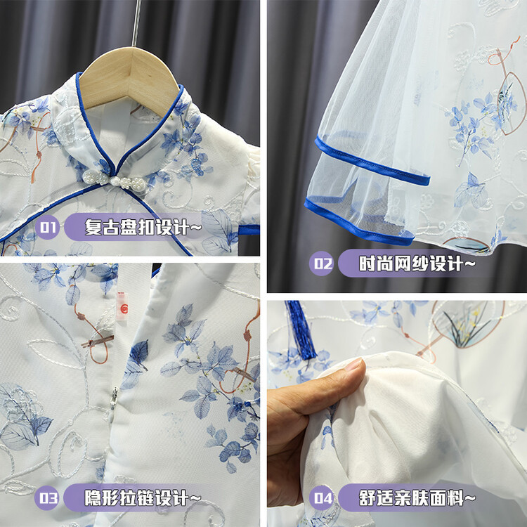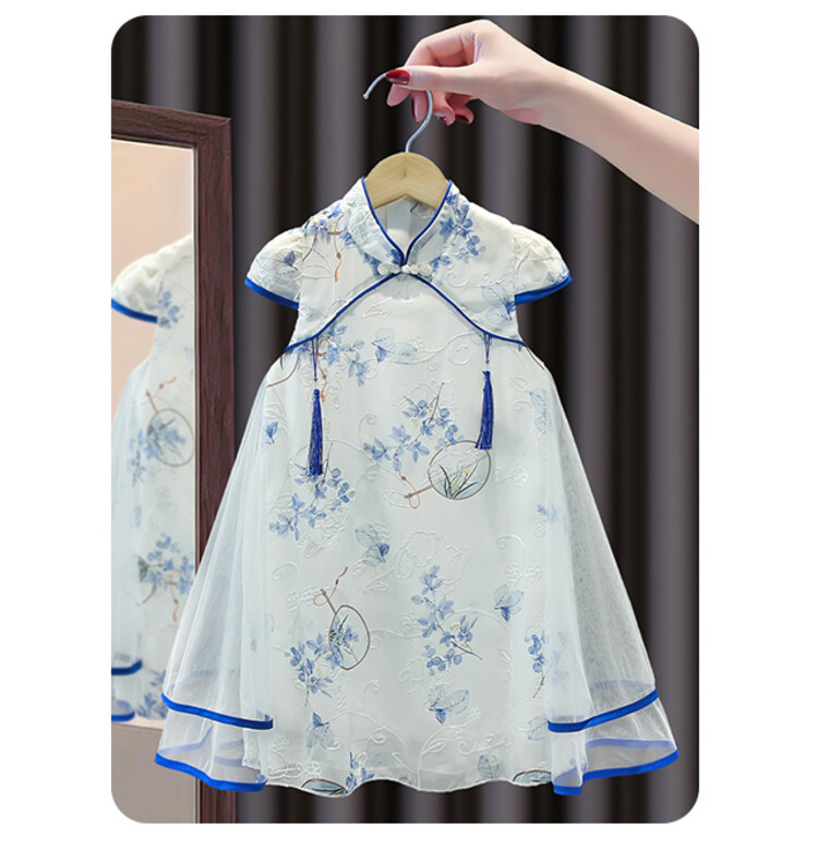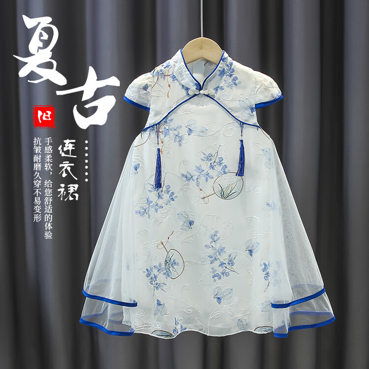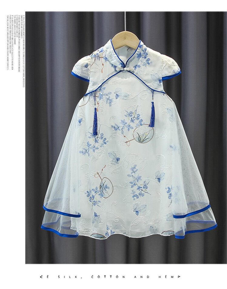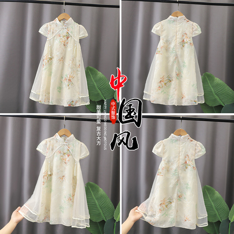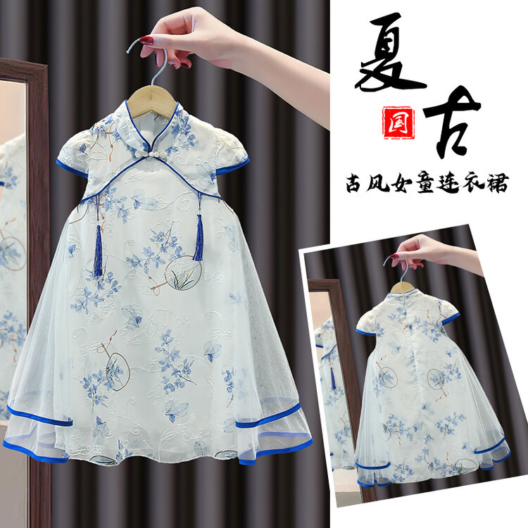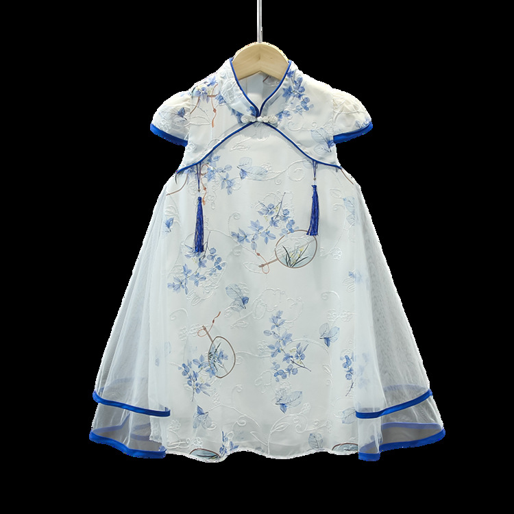 2023 новое летнее детское стильное платье принцессы Cheongsam с принтом в китайском стиле этническое платье для девочек