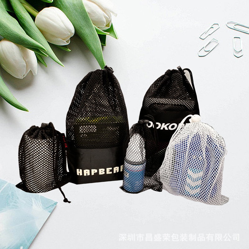 Нейлоновый полиэфирный теннисный мешок спортивный черный белый игрушечный шнур сетчатая ткань для хранения сумки для упаковки на заказ