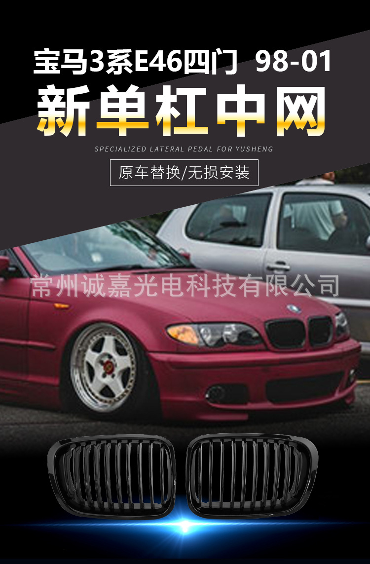 Прямые волосы с завода подходят для BMW 3 серии E46 четырехдверный передний бампер 98-01 Черная средняя Сетка Модифицированная впускная решетка