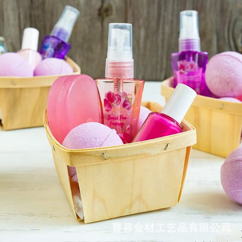 Квадратная кора тонкая кора тополя деревянная корзина дешевая экспортная деревянная одноразовая ягодная деревянная корзина для свадебной вечеринки