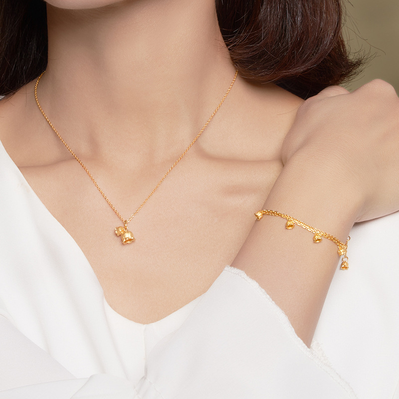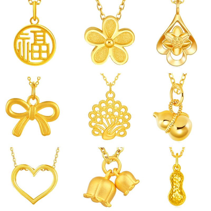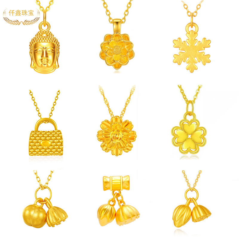 Qianxin ювелирные изделия 999 золотой кулон 24K кулон из чистого золота 3D набор из твердого золота Цепочка Shake Tone групповая покупка в прямом эфире оптовая продажа с фабрики