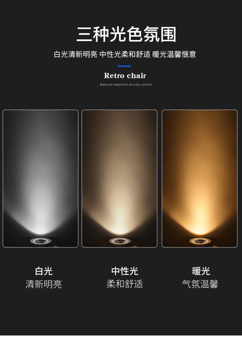 Белый свет 6500К; Теплый свет 3000К; Нейтральный свет 4000К; Трехцветное затемнение