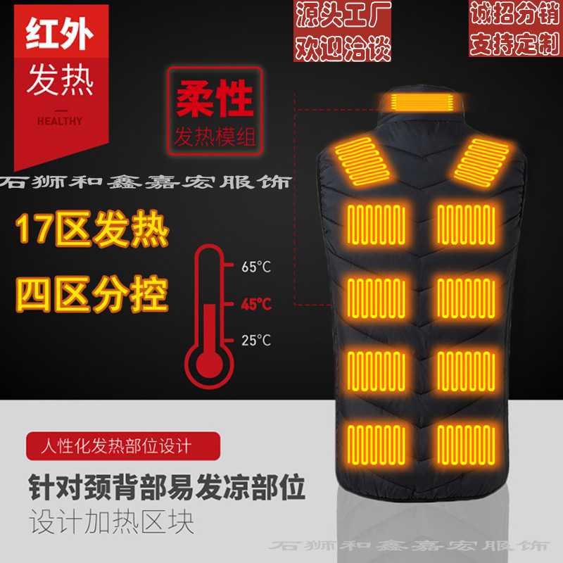 Трансграничный USB-нагревательный жилет Интеллектуальная нагревательная куртка для мужчин и женщин Электрическое отопление всего тела Теплый жилет с постоянной температурой