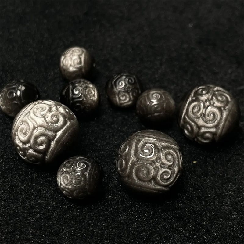 Натуральные серебряные обсидиановые резные флаттер бусины Круглые бусины аксессуары для рукоделия