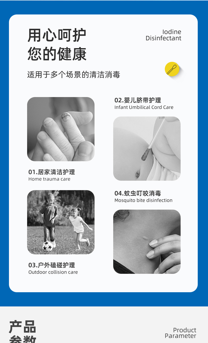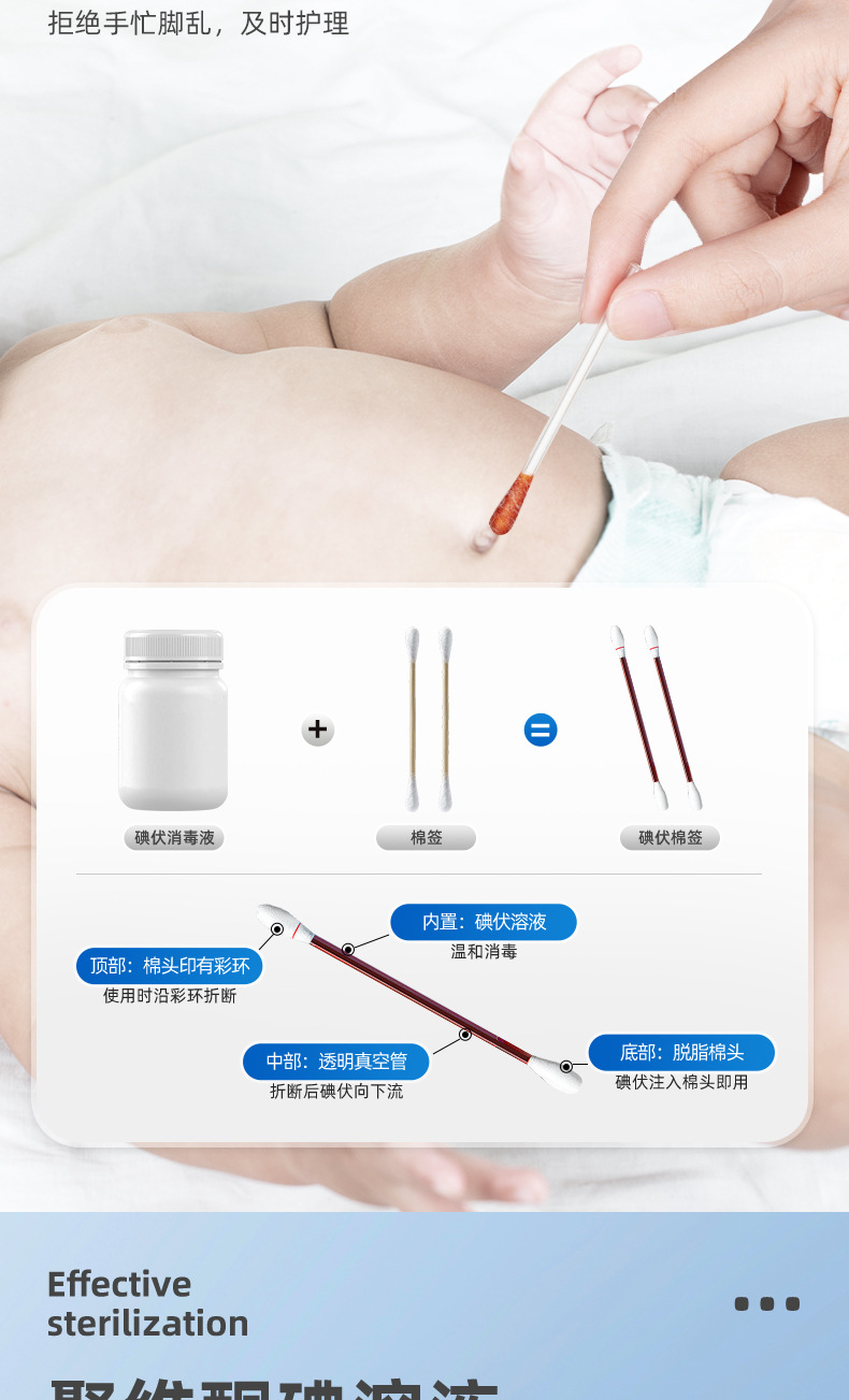 Йодиодный ватный тампон в мешках 50 наружных портативных йодных ватных стержней одноразового детского дезинфицирующим раствором йодированного