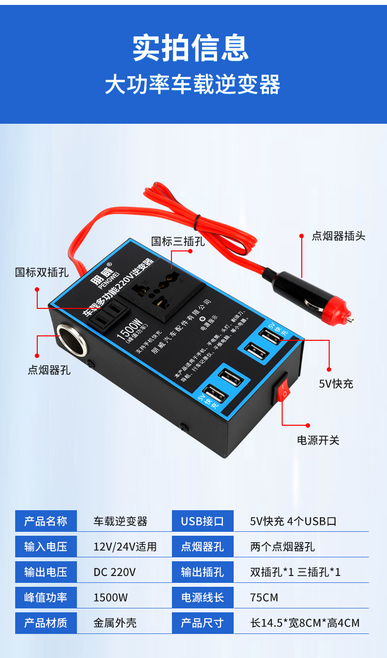 [Китайская версия] Автомобильный инвертор [4USB] Высококачественное усиление; [Английская версия] Автомобильный инвертор [4USB] Высококачественное усиление