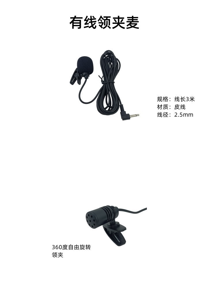 Черный проводной петличный микрофон 1m [для усилителя]; Черный проводной микрофон с зажимом на воротнике 2m (только кожаный шнур/автомобильная GPS-навигация); Черный проводной петличный микрофон 2m (только для кожаного шнура/усилителя); Черный проводной зажим для воротника 3m [только кожаный шнур/автомобильная GPS-навигация]; Черный проводной петличный микрофон 3m [для кожаного кабеля/усилителя]