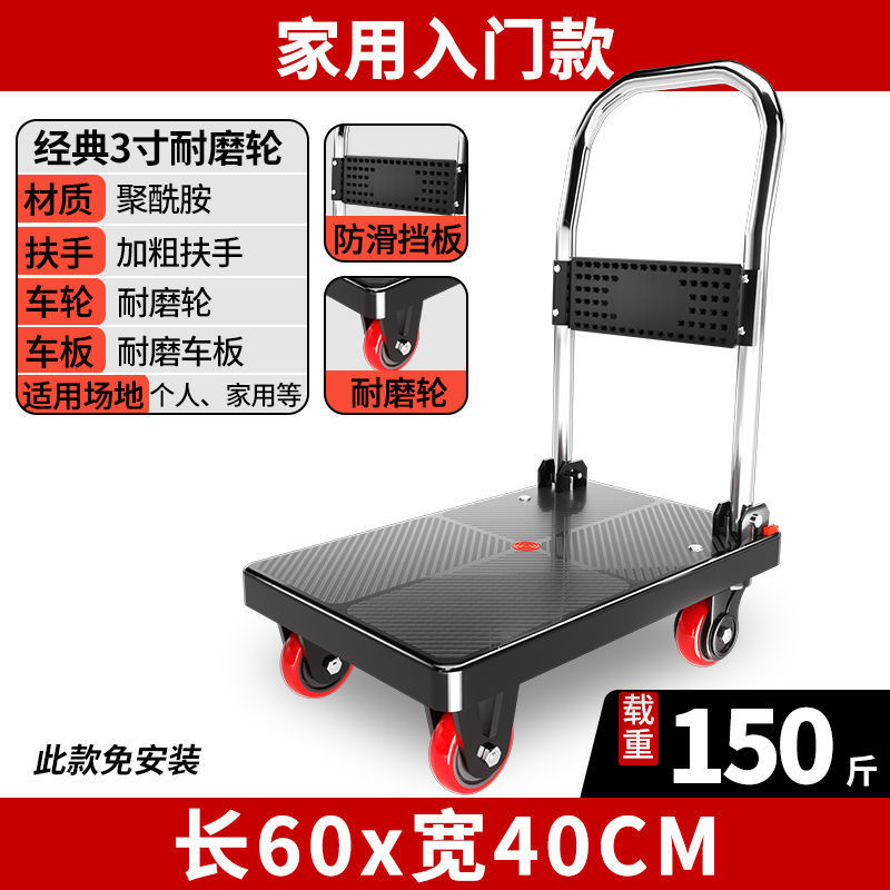 Тележка тележка Плоская тележка Бытовая немой прицеп тележка складная тележка Плоская тележка