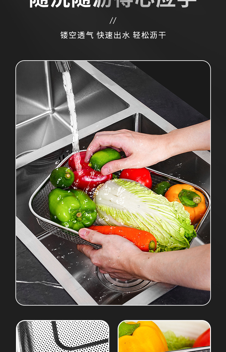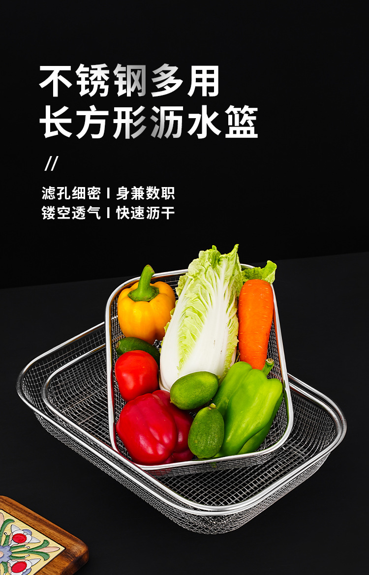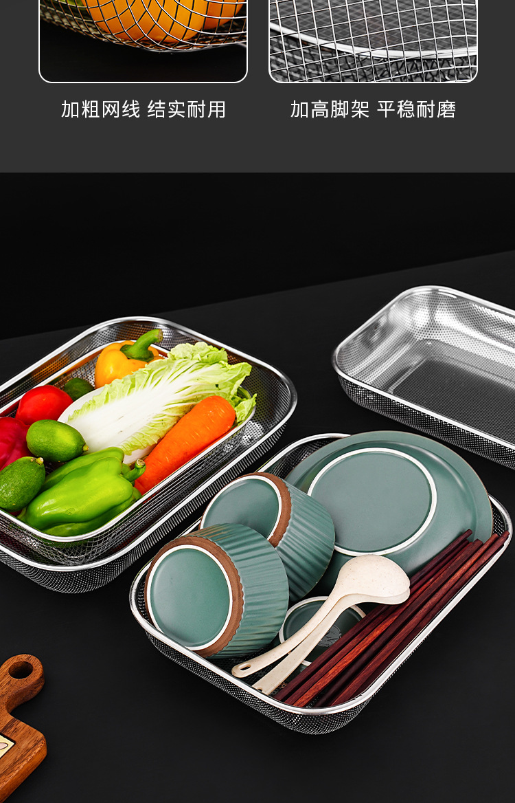 Корзина для слива Кухонная корзина для фруктов и овощей Сетчатая корзина для слива Корзина для мытья овощей из нержавеющей стали Прямоугольная корзина для фруктов Корзина для сушки утечек