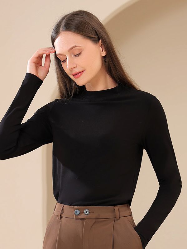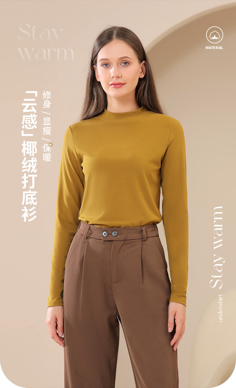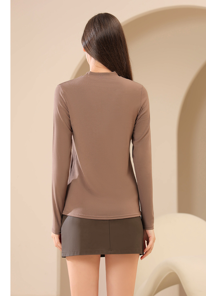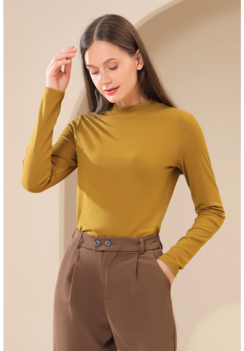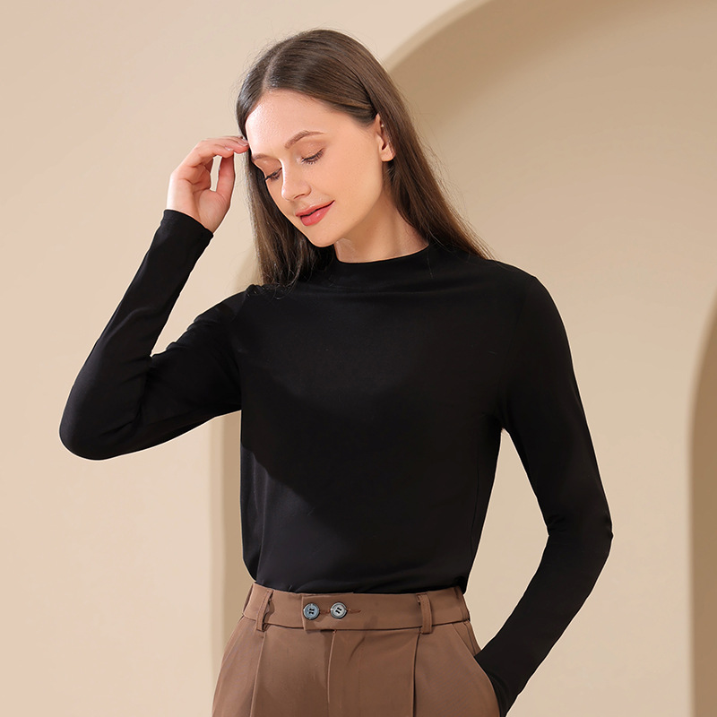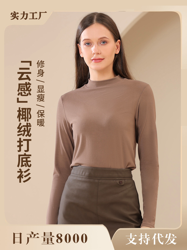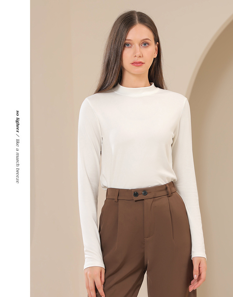 Осенне-зимнее маленькое осеннее пальто с воротником-стойкой и длинными рукавами для внутренней и верхней одежды, топ со средним воротником, базовая женская рубашка с полуводолазкой