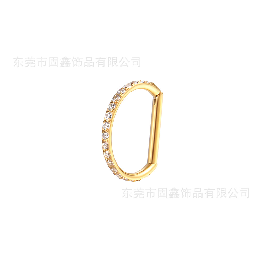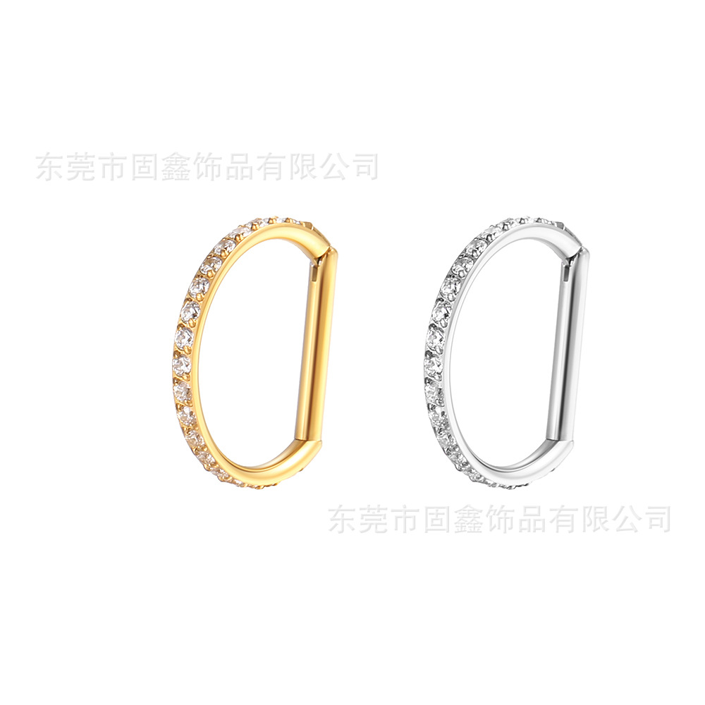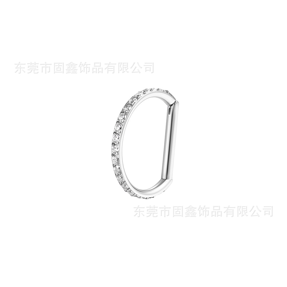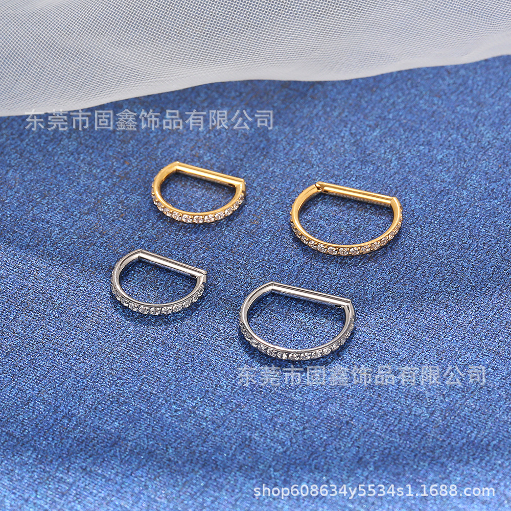 Титановое кольцо для носа F136 с D-образной формой и стразами, украшенное цирконием, из титанового сплава, пирсинг-украшение для носа, бесшовные серьги-гвоздики для ушей и ушных хряща.