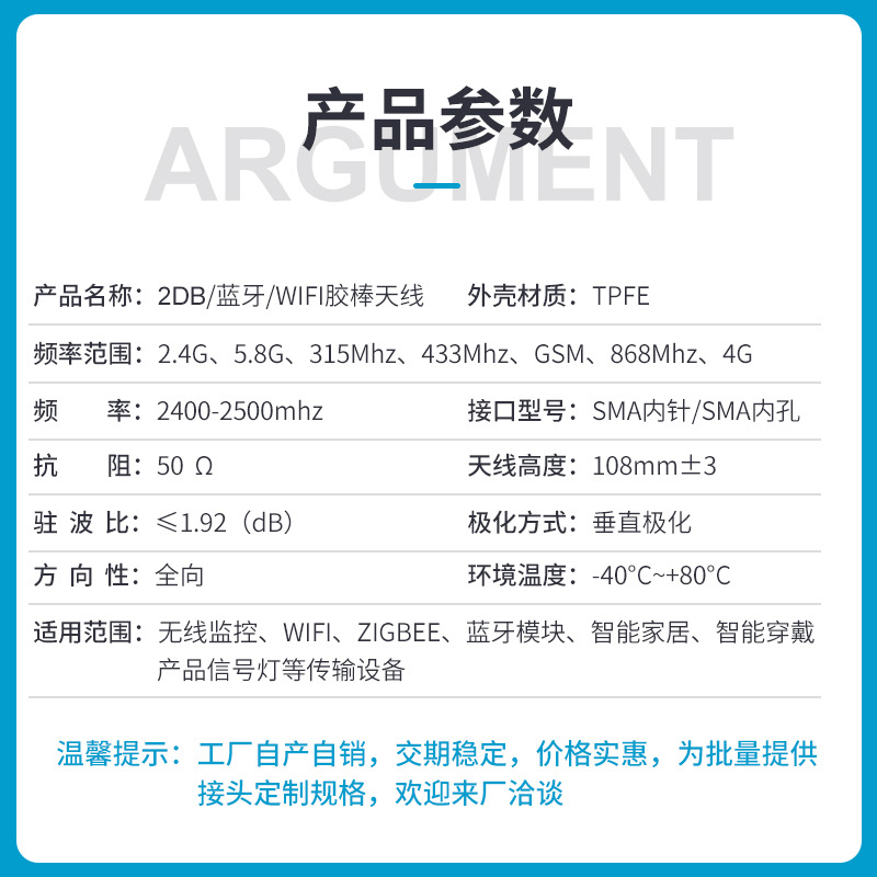 接头定制:可定制SMA头/N头等(详情联系客服)