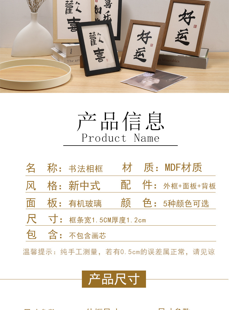 Новая вдохновляющая каллиграфия в китайском стиле, плоская Фоторамка ручной работы, 5-дюймовая 6-дюймовая 7-дюймовая 8-дюймовая небольшая фоторамка формата A4, подарочное украшение, оптовая продажа