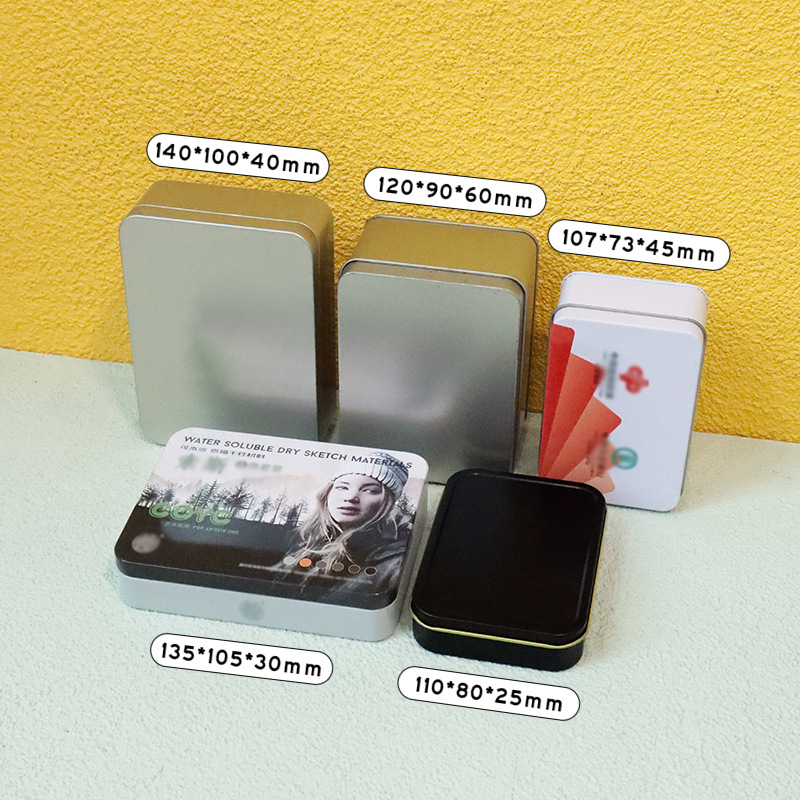 Индивидуальная прямоугольная жестяная коробка, черная матовая жестяная коробка для игральных карт, жестяная коробка для хранения деревянных игрушек