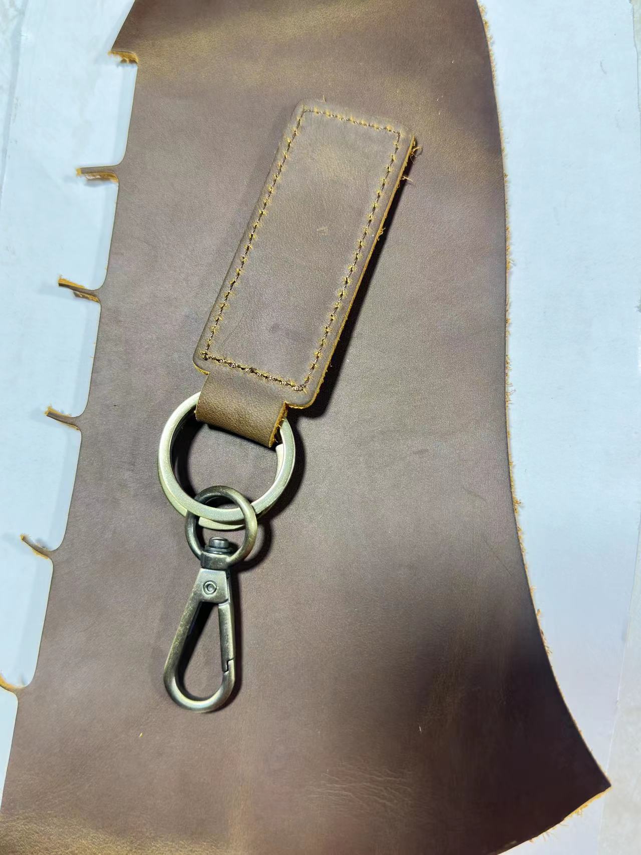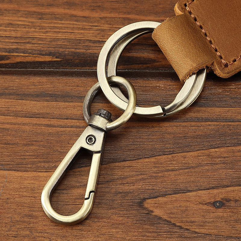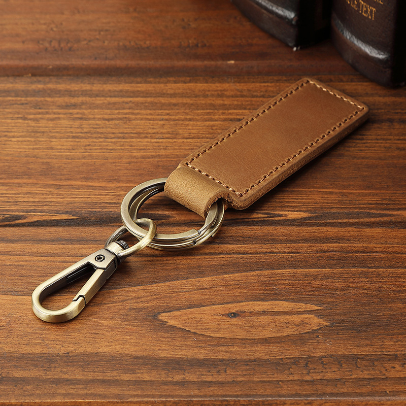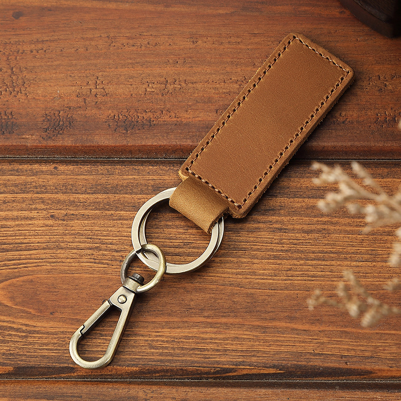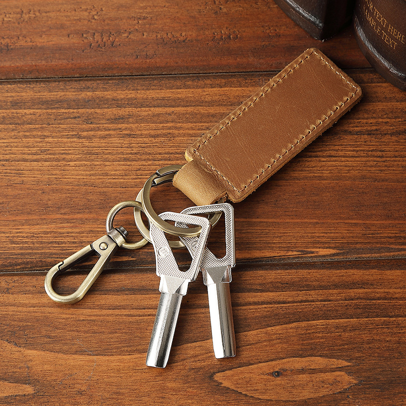 Оптовая продажа кожаных брелоков для ключей из желтой кожи Crazy Horse, анти-потерянные брелоки для автомобилей, креативные подвески для ключей
