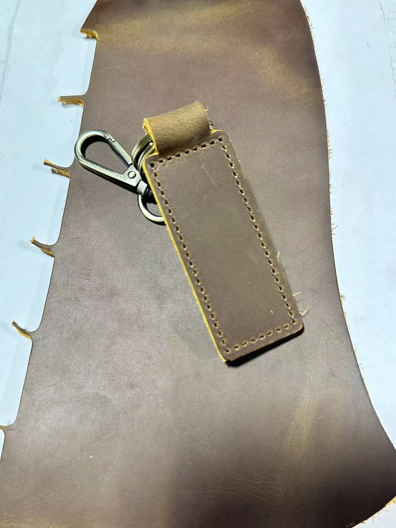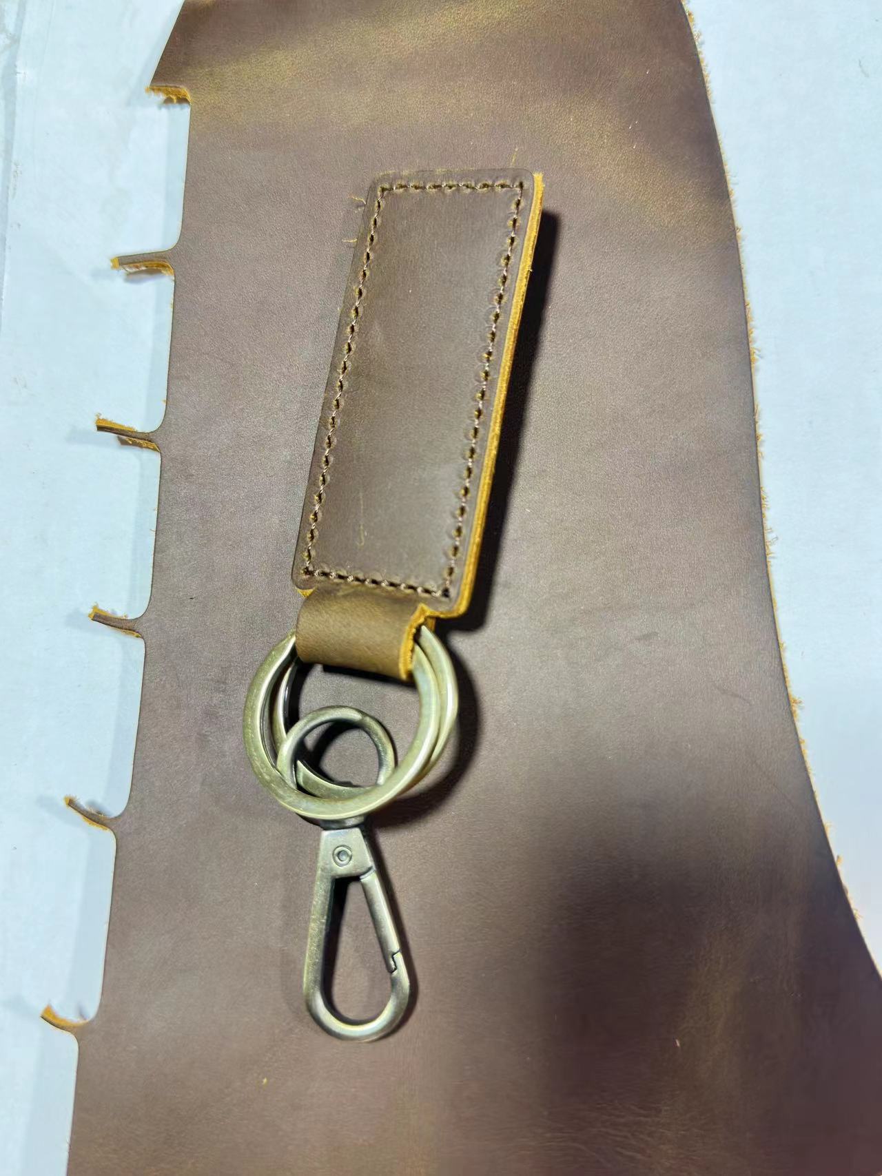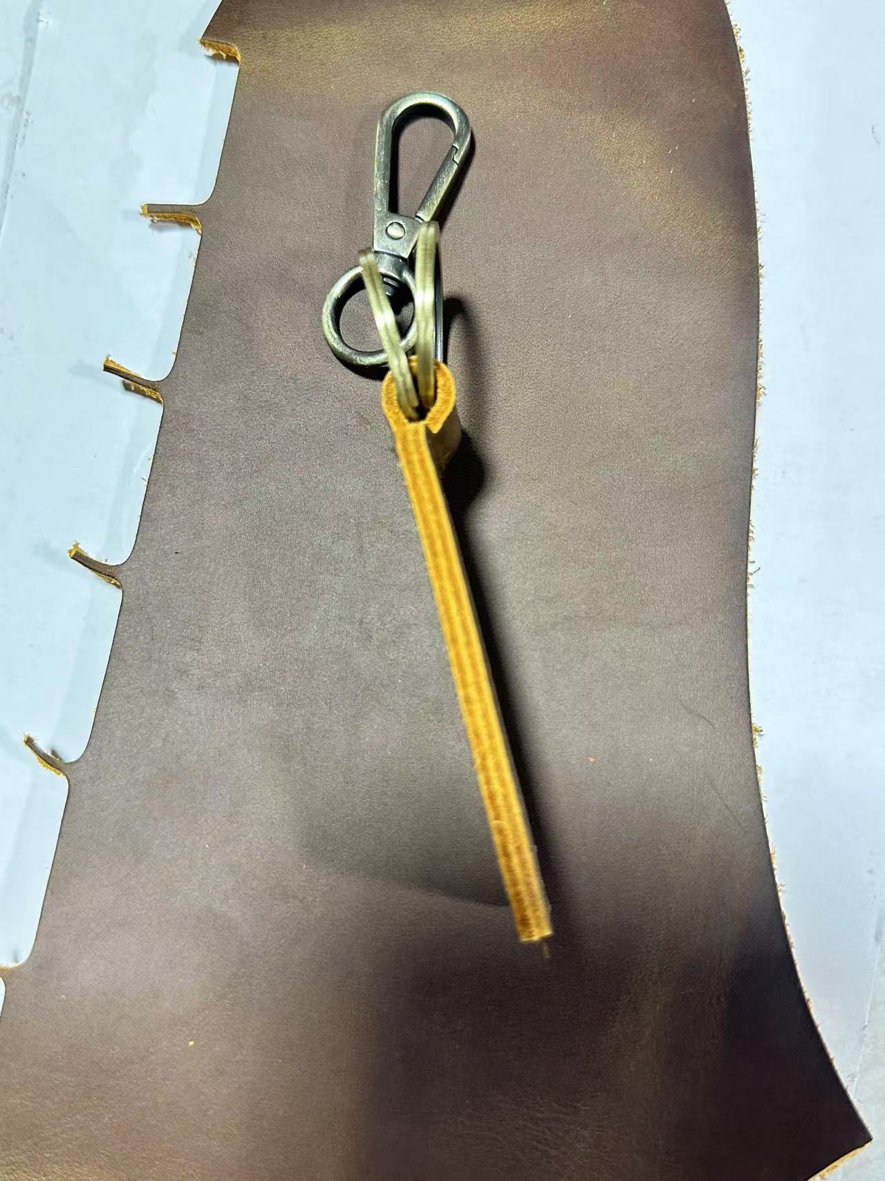 Оптовая продажа кожаных брелоков для ключей из желтой кожи Crazy Horse, анти-потерянные брелоки для автомобилей, креативные подвески для ключей