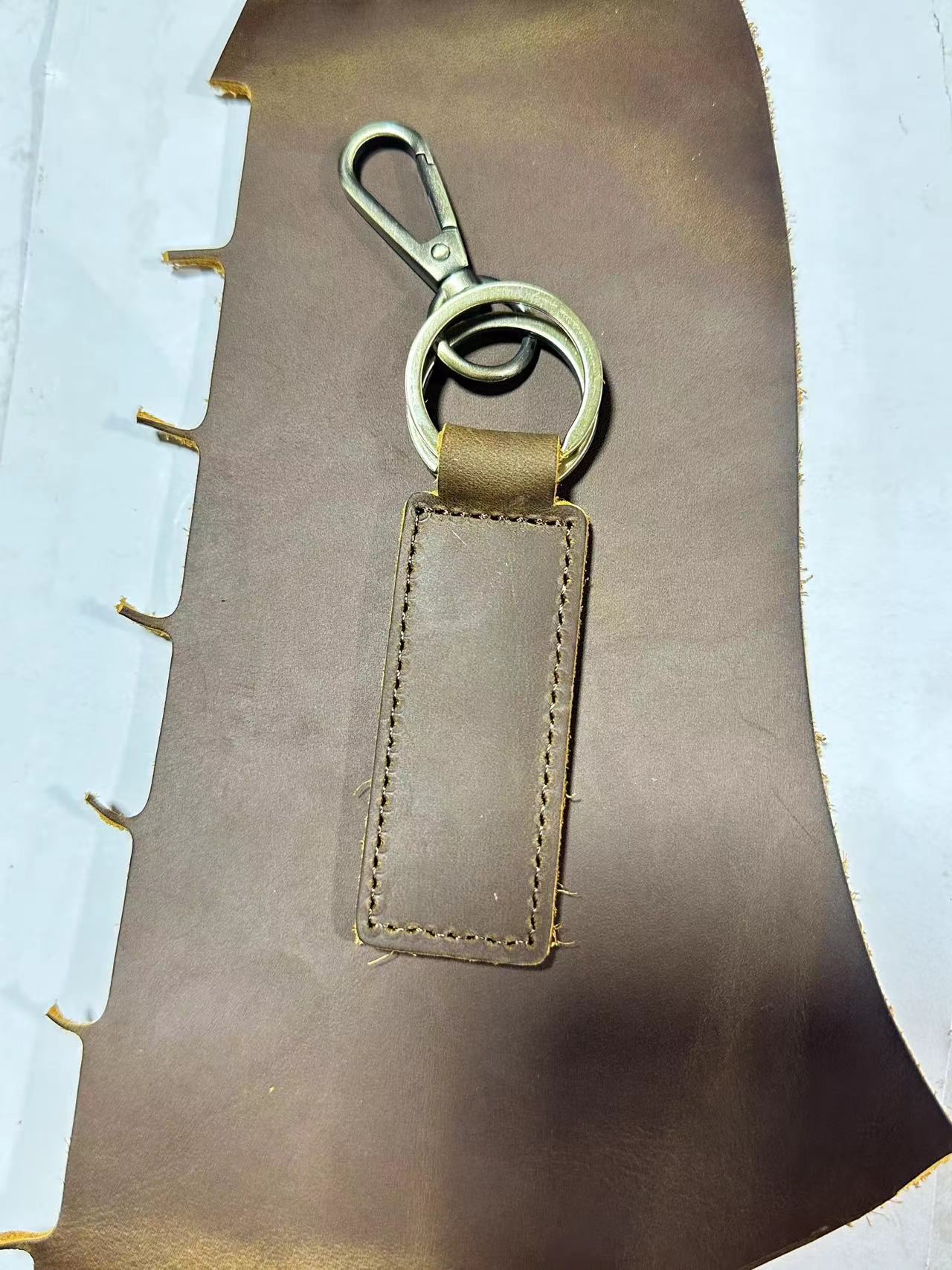 细分尺寸:皮长8厘米宽3厘米 五金圈和狗扣长6.8厘米圈 直径3厘米 |