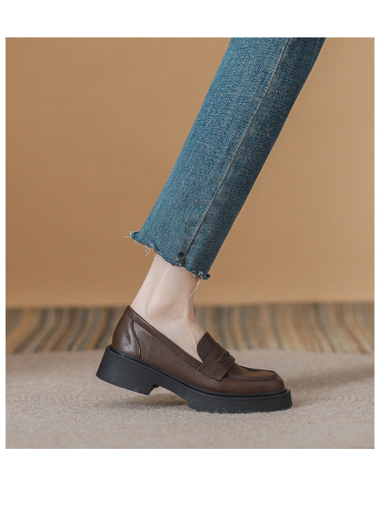 Черные лоферы из натуральной кожи, женские слипоны, новинка 2023 года, весна-осень, маленькие кожаные туфли, Женская универсальная Однослойная обувь в британском стиле в стиле ретро
