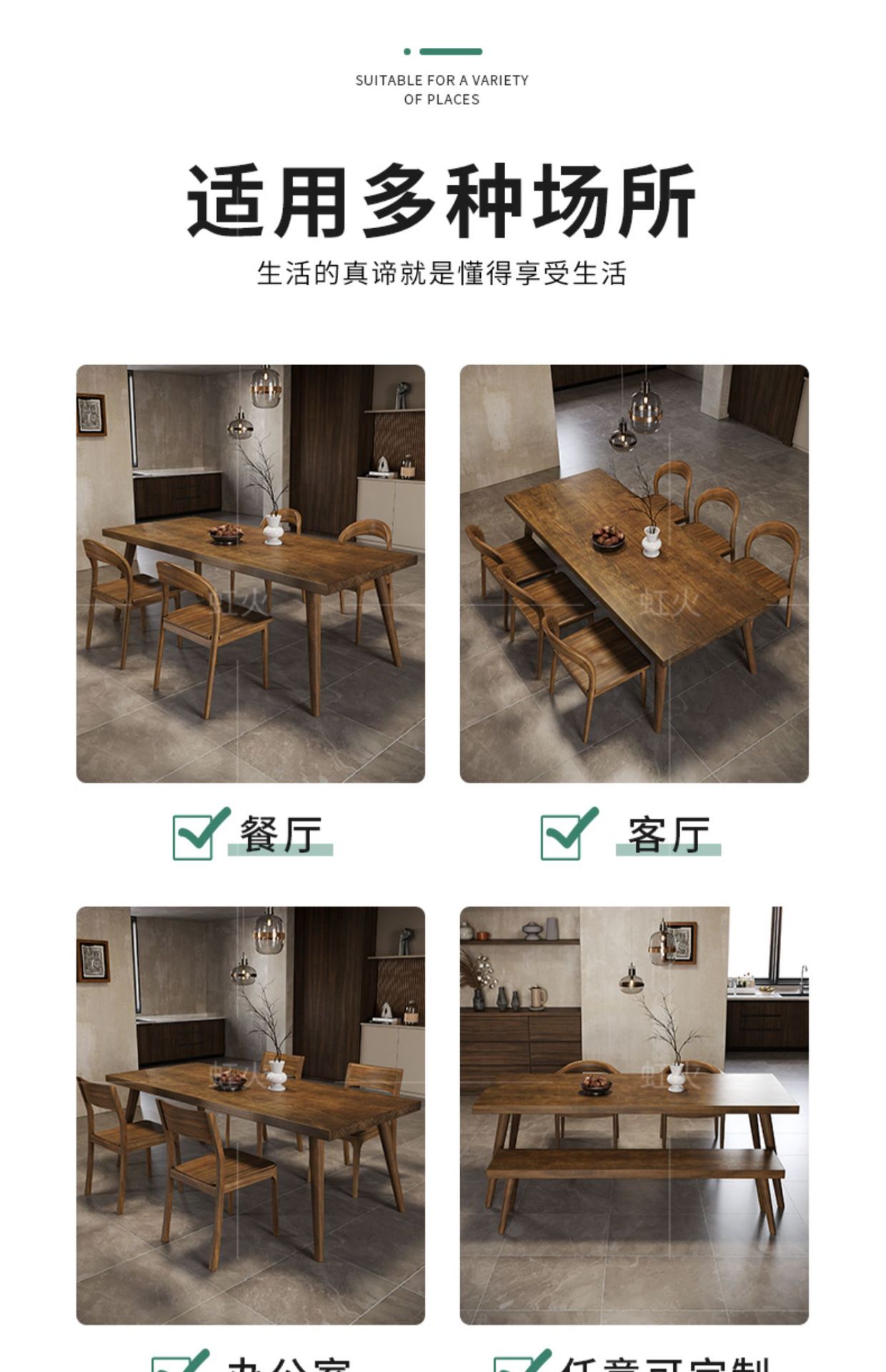 Винтажный обеденный стол и стул из цельного дерева Домашняя гостиная Креативный обеденный стол Кафе Ресторан Маленькая квартира Полностью из цельного дерева Обеденный стол и Набор стульев