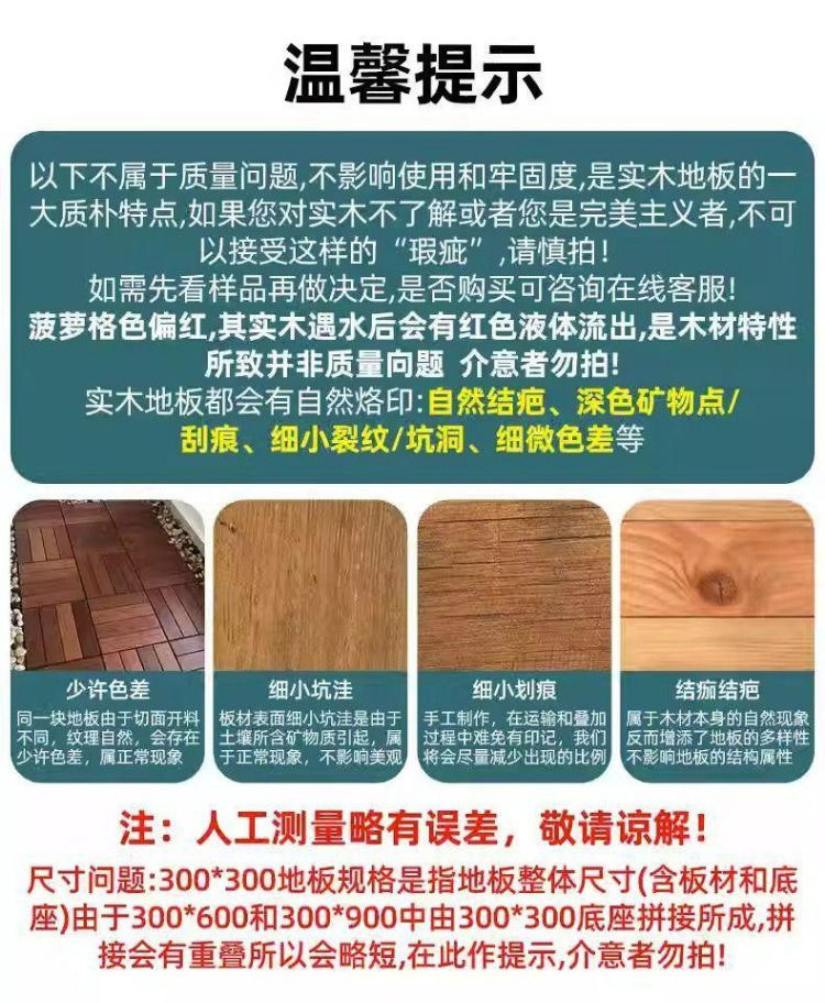Антисептический пол из копченого дерева сосны лесной (большое количество); Модернизированная модель Pinus sylvestris, без регулировки и замены.; Имитацию газона можно соединить с полом.; Утолщенный наружный пол (в основном рекомендован менеджером магазина); Шесть моделей из утолщенного дерева 300*300cm; Восемь прочных моделей из дерева 300*300cm; Масло для воска Four Wood Wood, модель 300*600cm; галька; Дефектная модель (без регулировки и замены); Пол с решеткой ананас 30*30; Пол с решеткой ананас 30*60; Расширенная модель масла из древесного воска (60*30)/шт. [толщина 2,3 см]