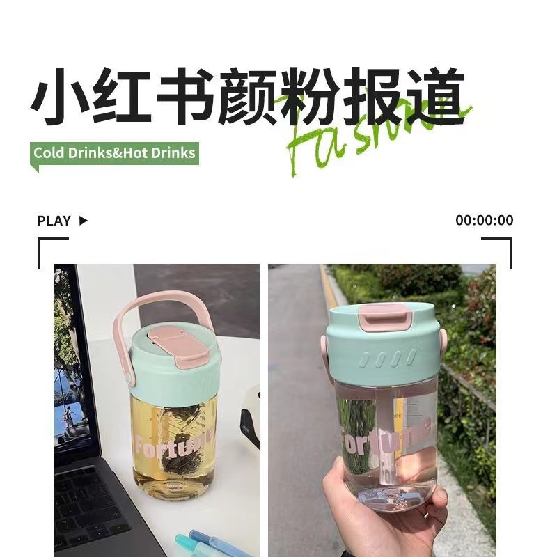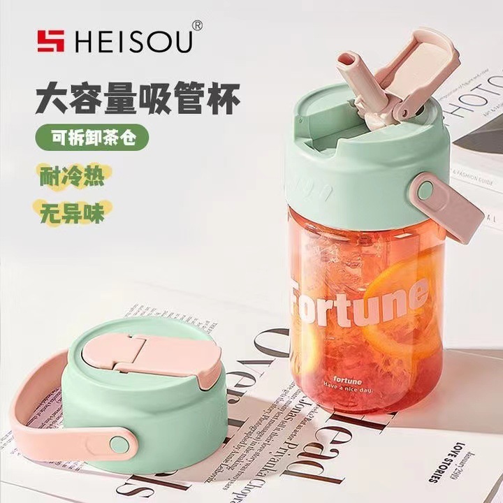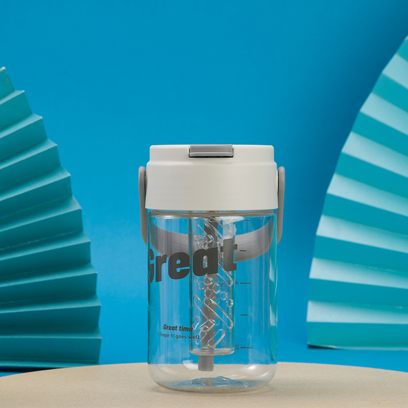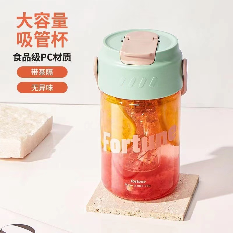 Портативная кружка для воды, кружка для воды с трубочкой, стильная, вместительная, уличная спортивная кружка для воды с защитой от падений, пластиковая кружка для воды с разделителем для чая и воды