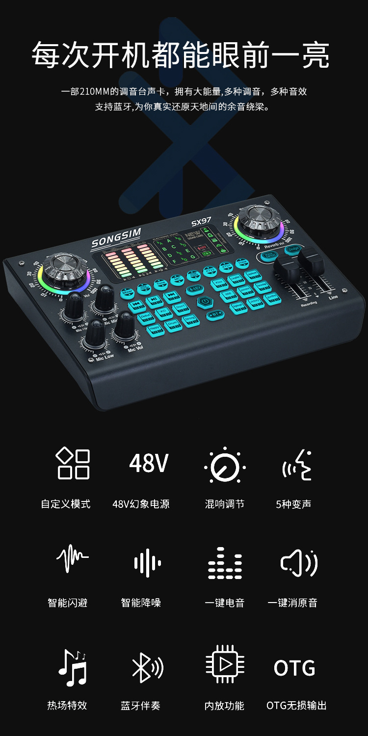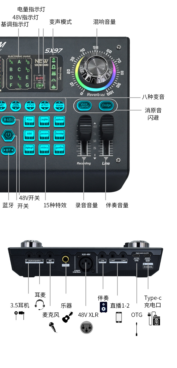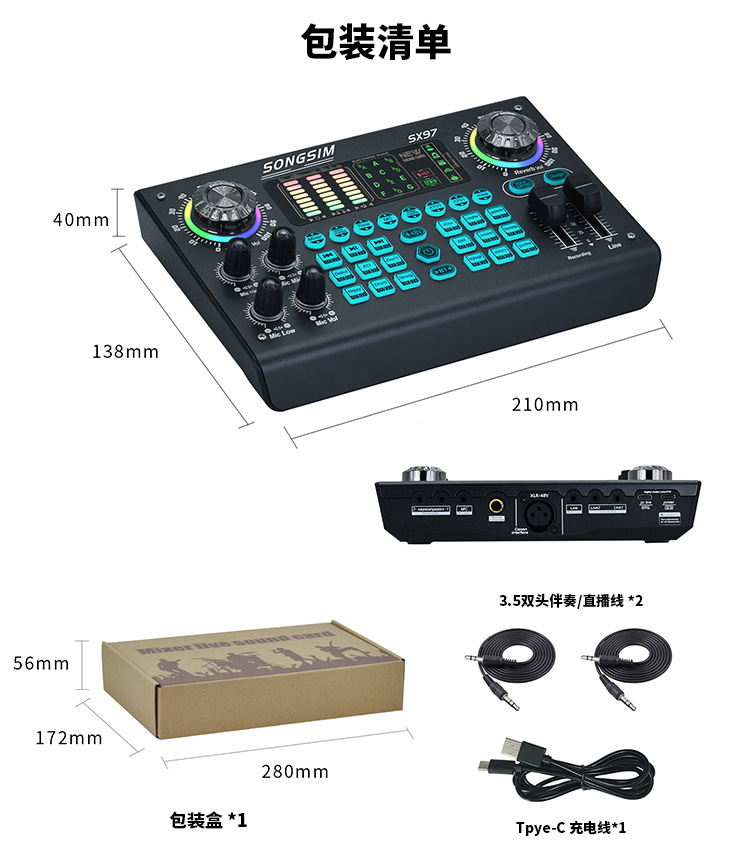 Трансграничный 48VSX97XLR английская версия компьютера Универсальный мобильный телефон пение живая звуковая карта проводной Конденсатор микрофон оборудование