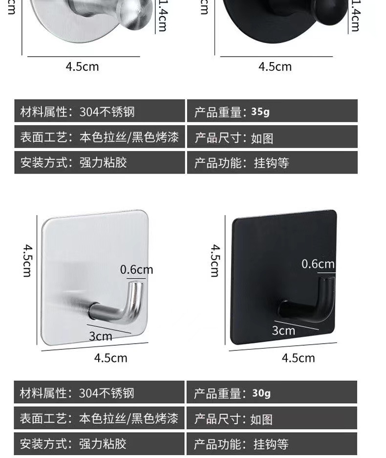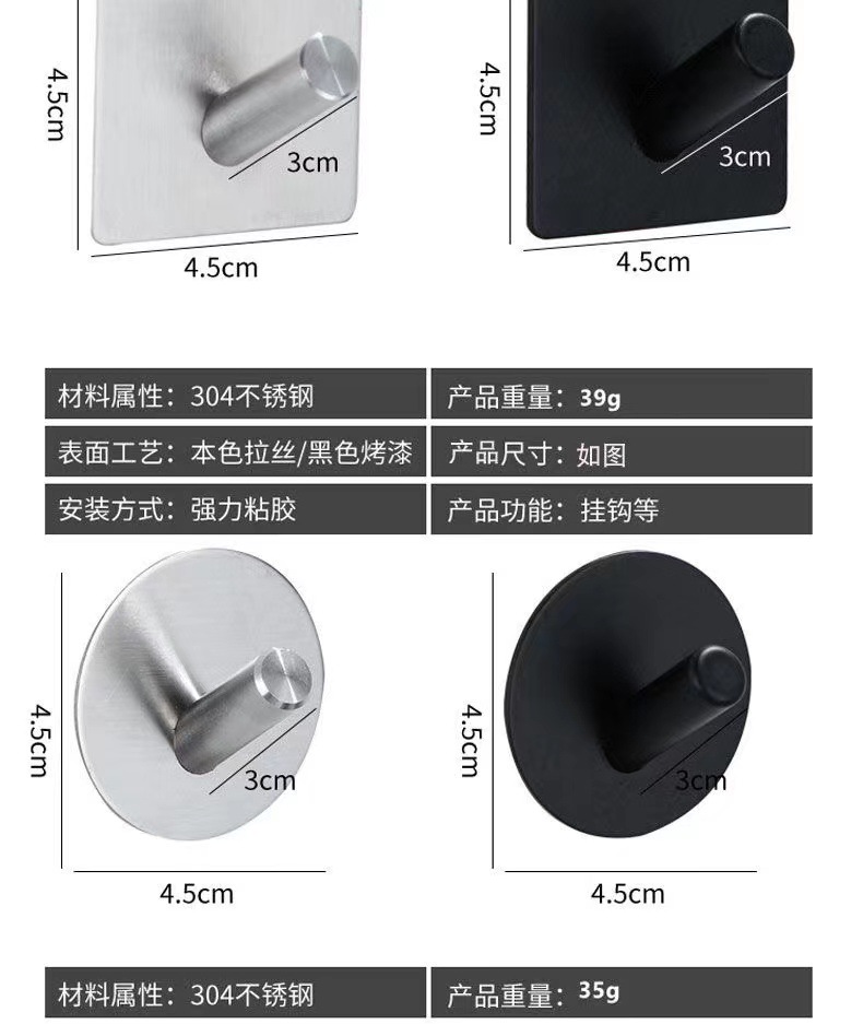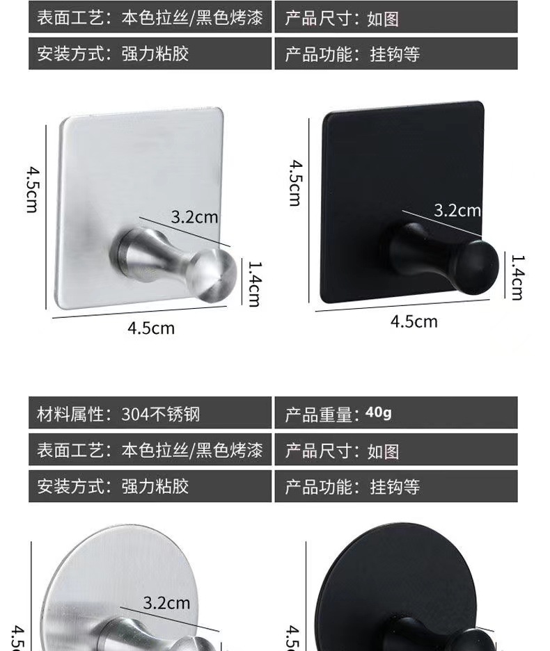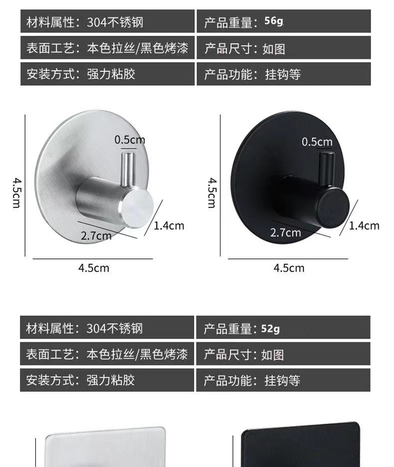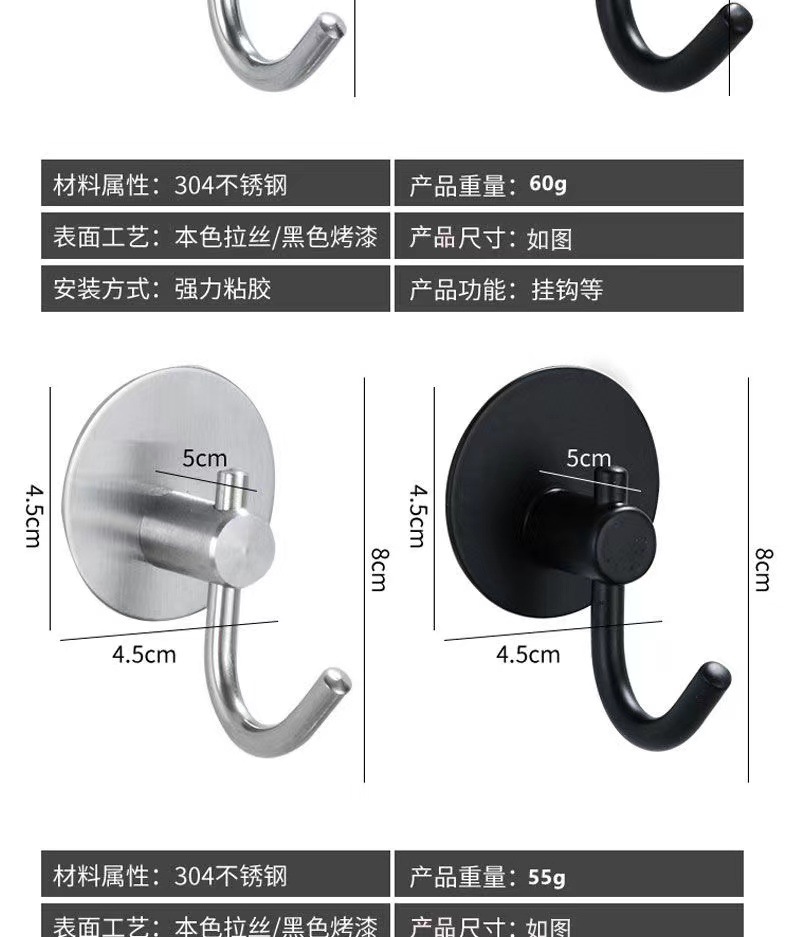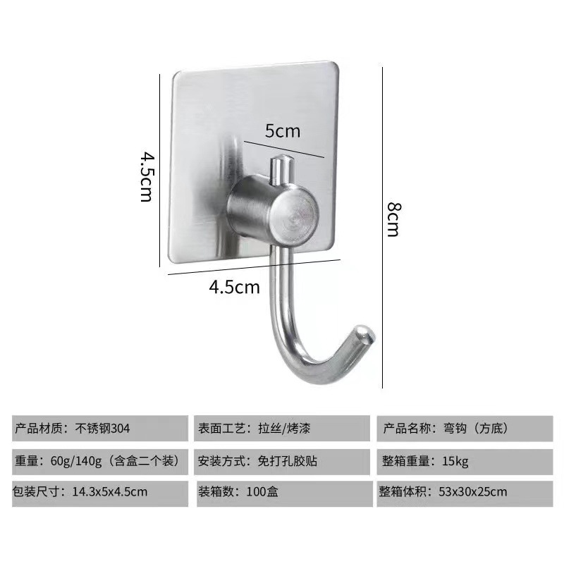 Прямые продажи с фабрики, крючок Amazon, крючок для одежды из нержавеющей стали 304, крючок для кухни и ванной комнаты, крючок для одежды, подвеска без сверления