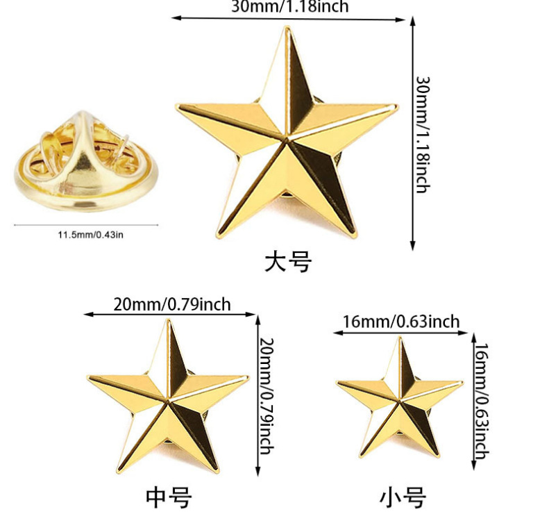 Трансграничный в наличии значок со звездой Золотой Серебряный Нагрудный значок шляпа рюкзак аксессуары для одежды пятиконечная звезда