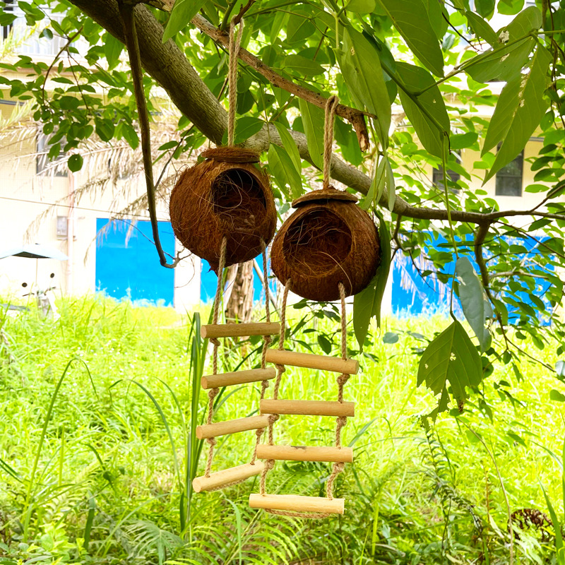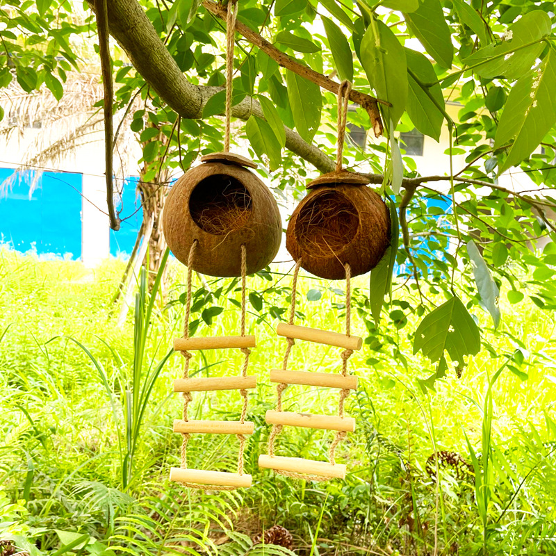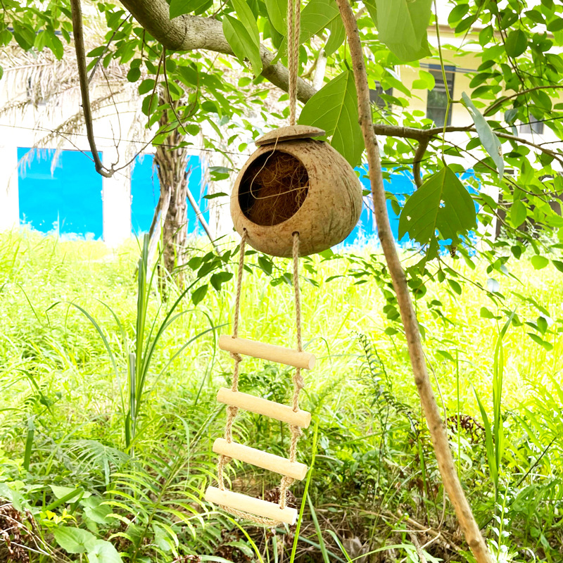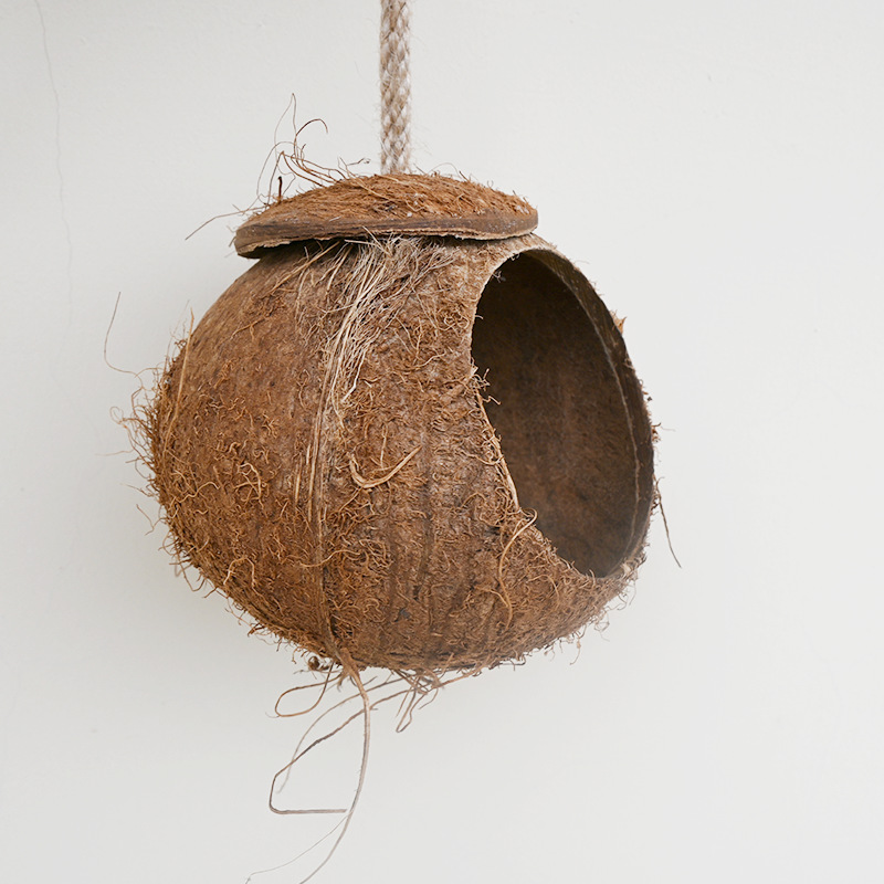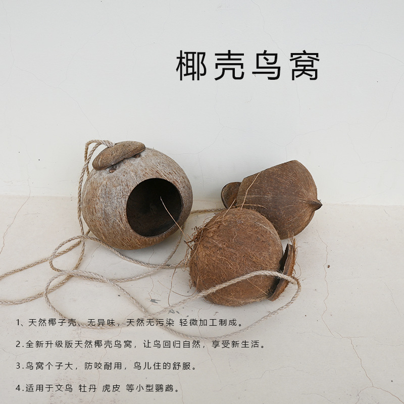 2.全新升级版天然椰壳鸟窝,让鸟回归自然,享受新生活。