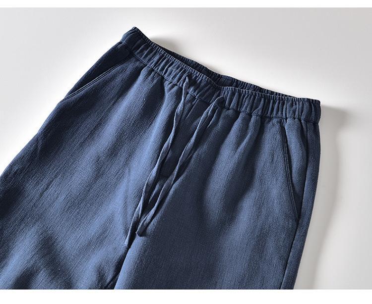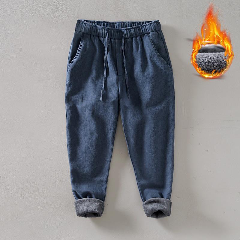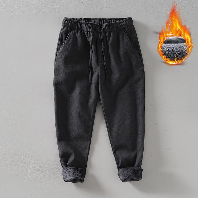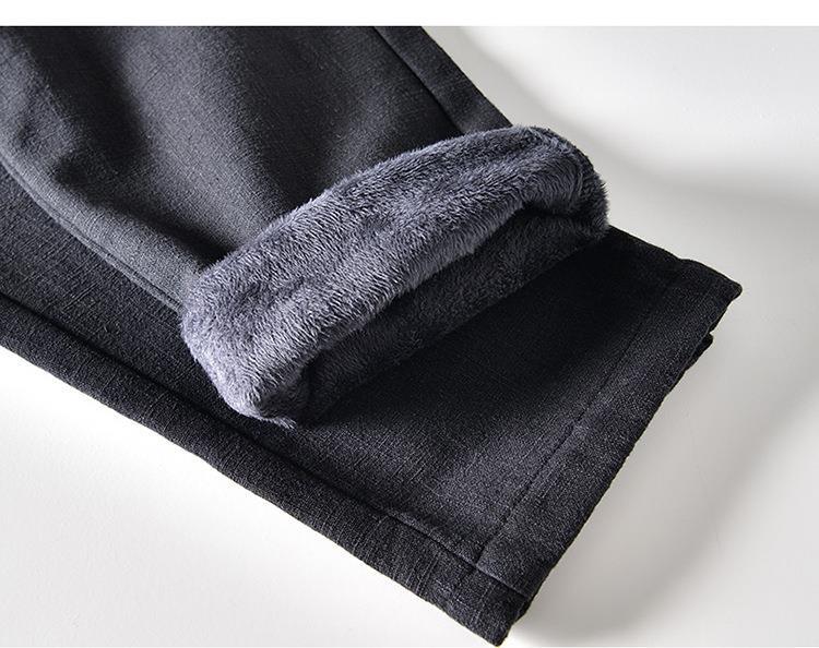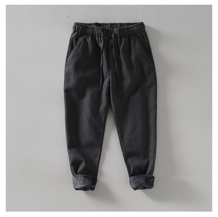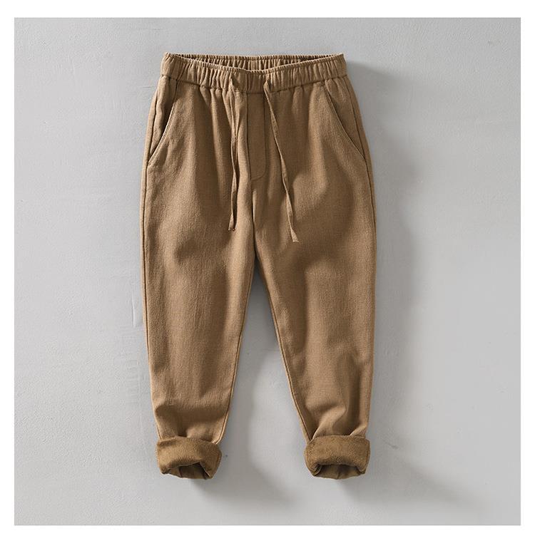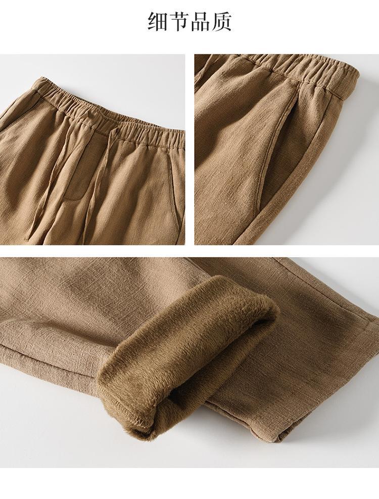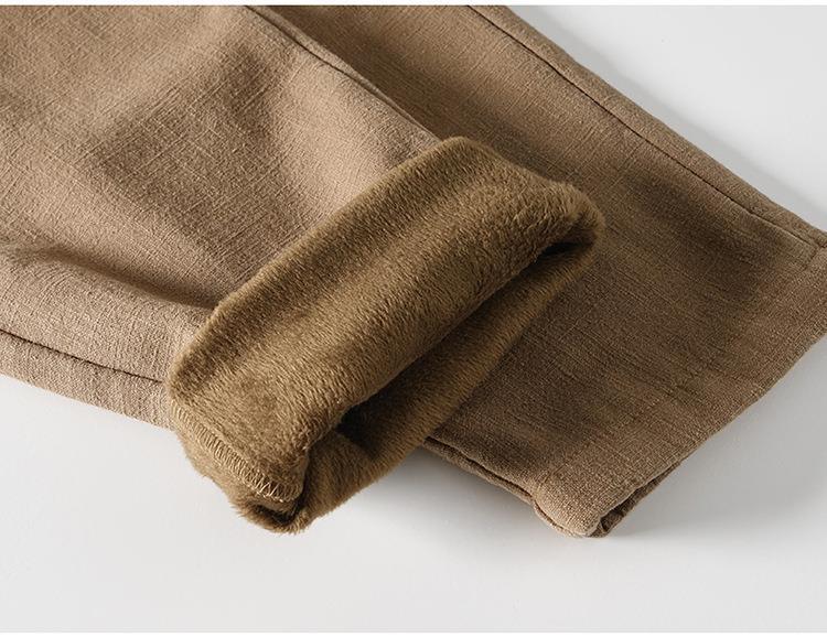 L8234 теплые Прямые повседневные хлопковые брюки из рами, мужские свободные ретро брюки с флисовой подкладкой на шнурке, поколение волос