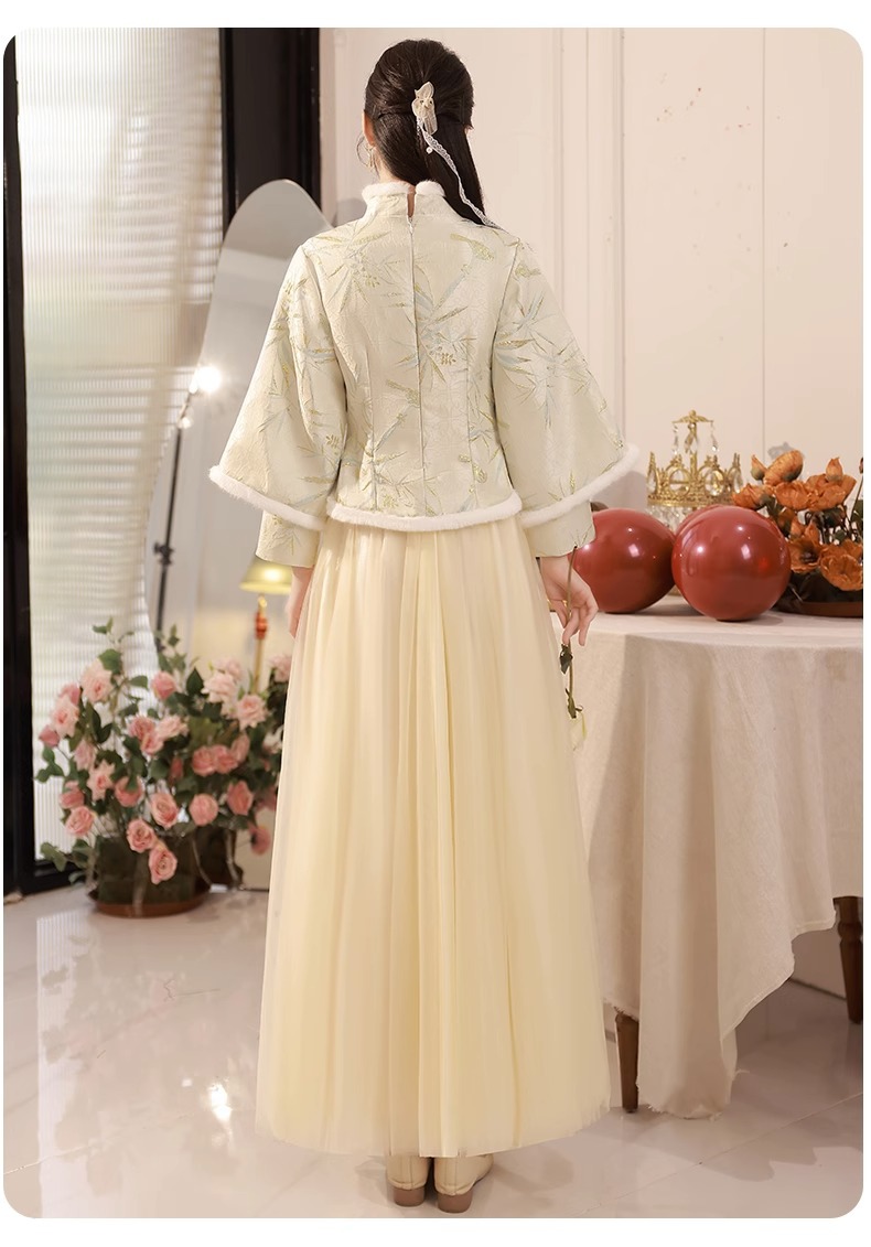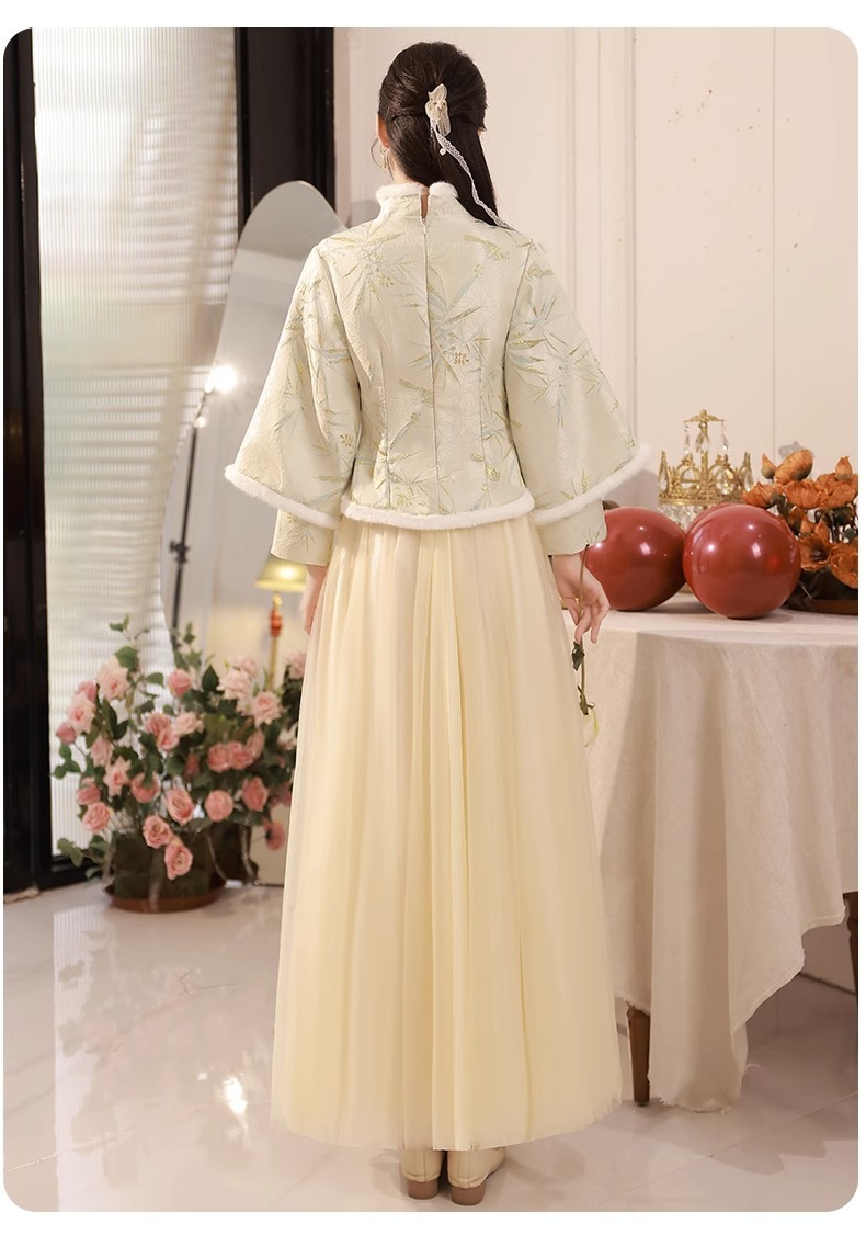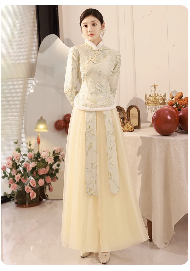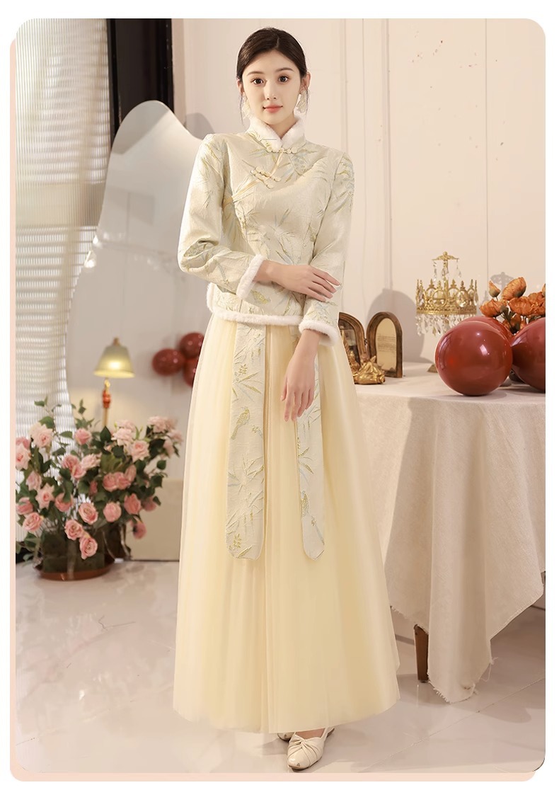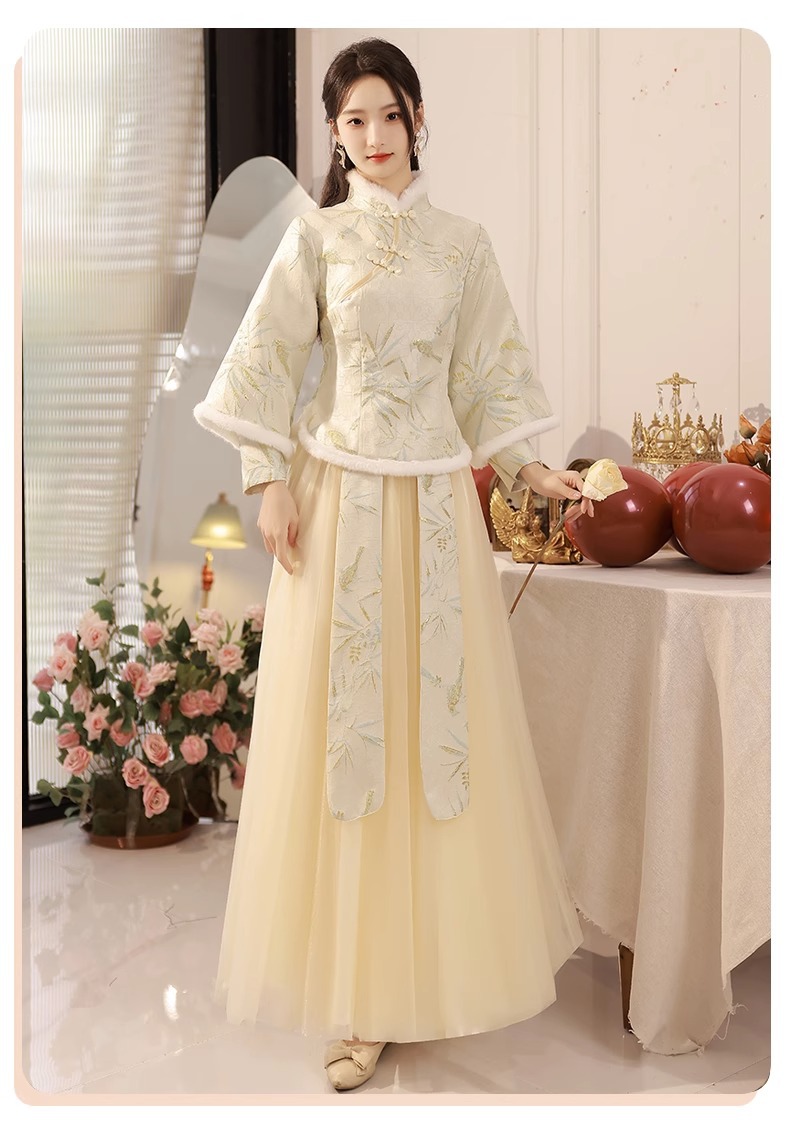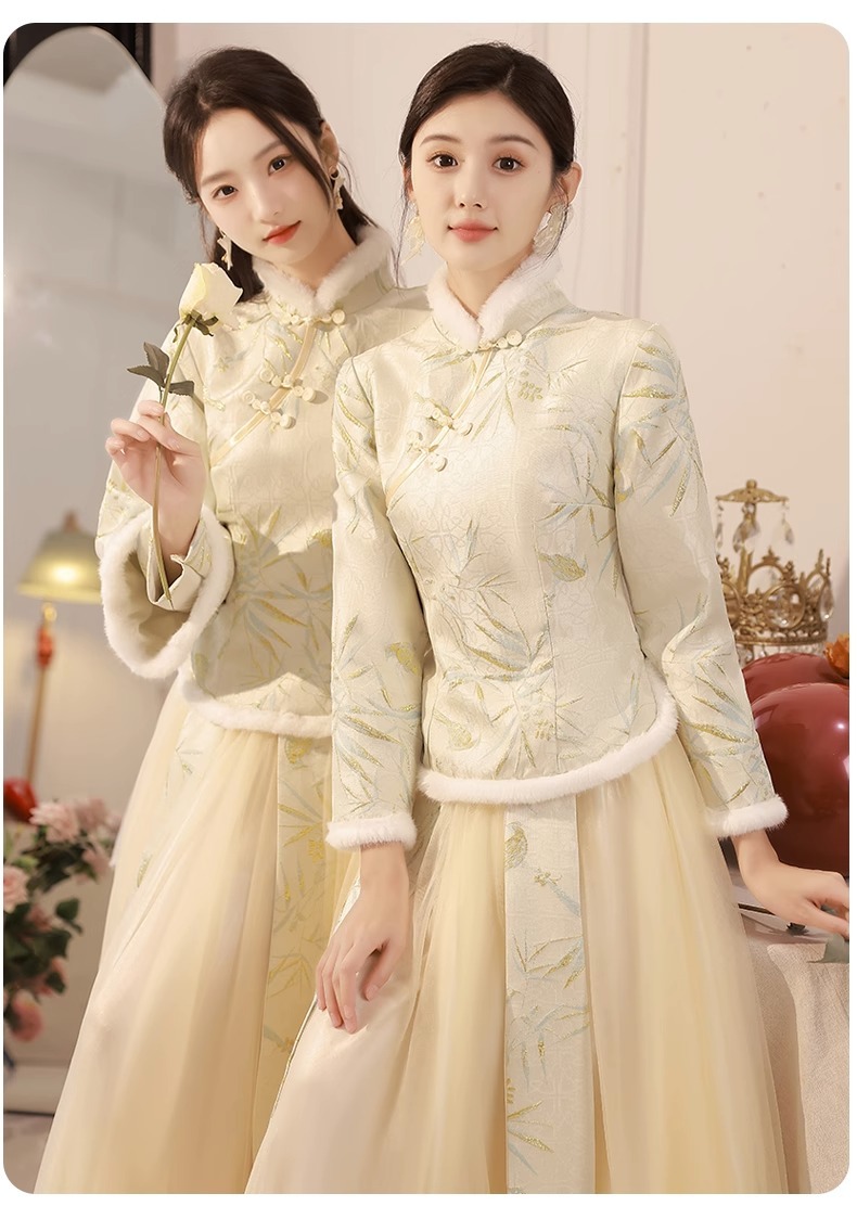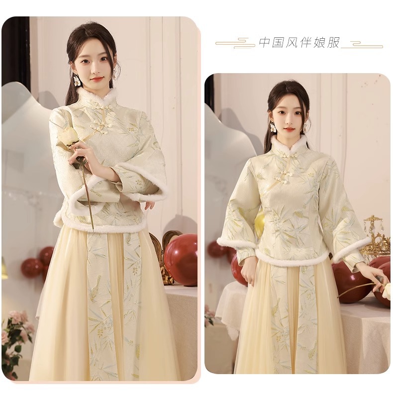 Китайские платья для подружек невесты, зимние, на флисовой подкладке, утолщенные, новинка 2025 года, с длинными рукавами, в традиционном китайском стиле, для группы подружек невесты, теплые и элитные.