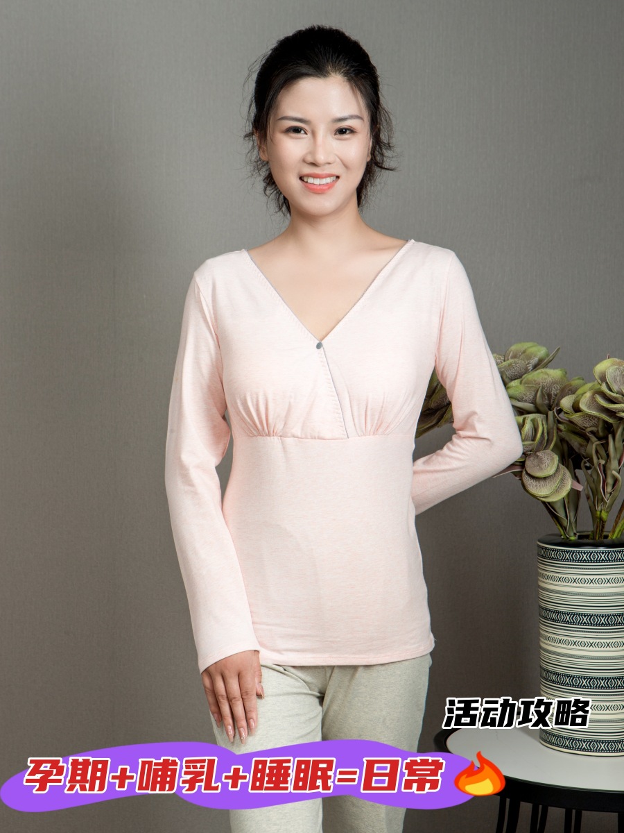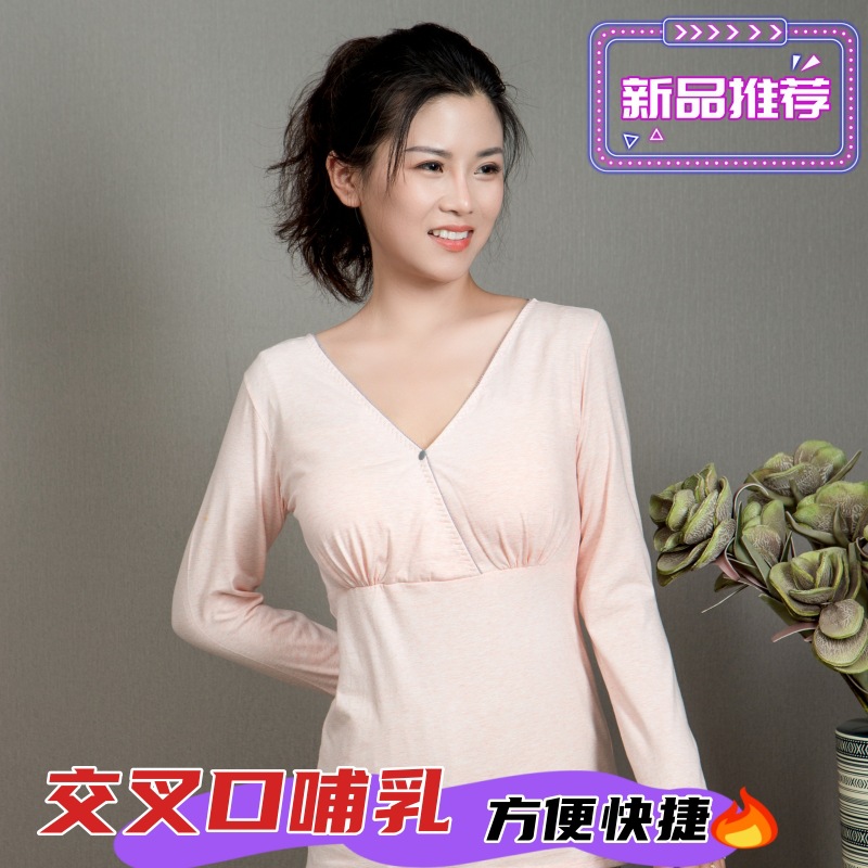 Хлопковый Топ для перекрестного грудного вскармливания с длинным рукавом Съемные и моющиеся подкладки для груди Футболка больших размеров Базовая одежда Домашняя одежда Бюстгальтер для беременных и послеродового периода