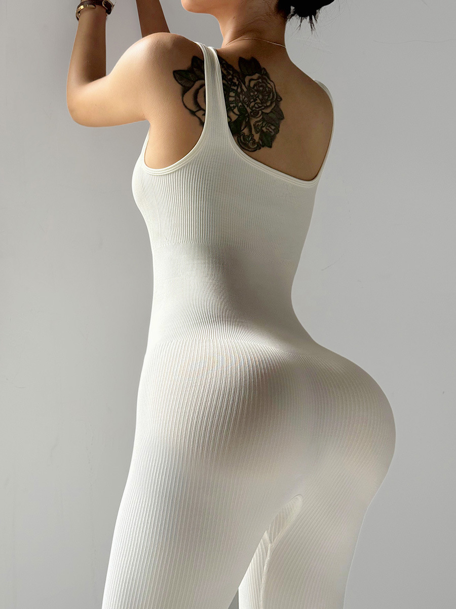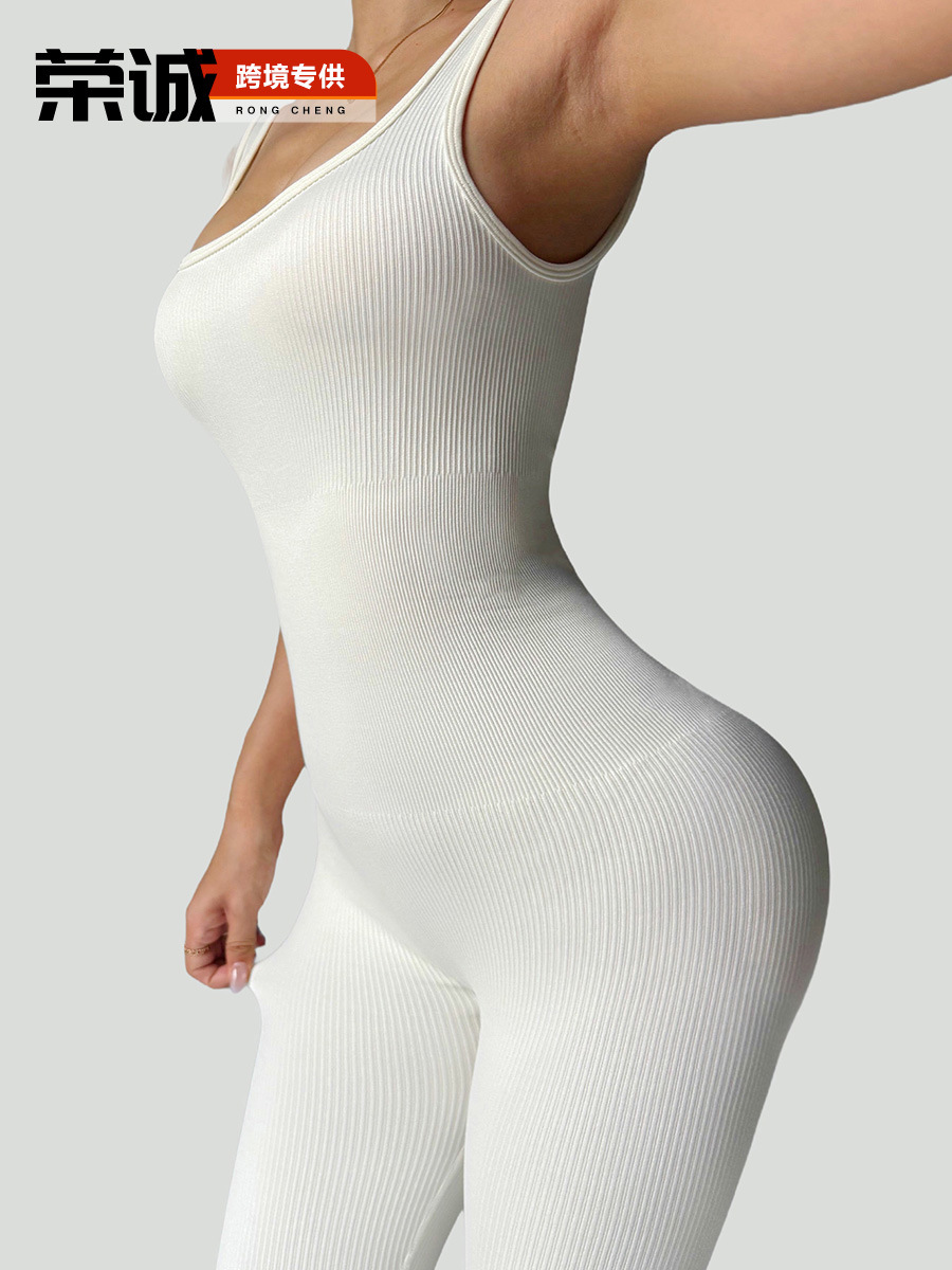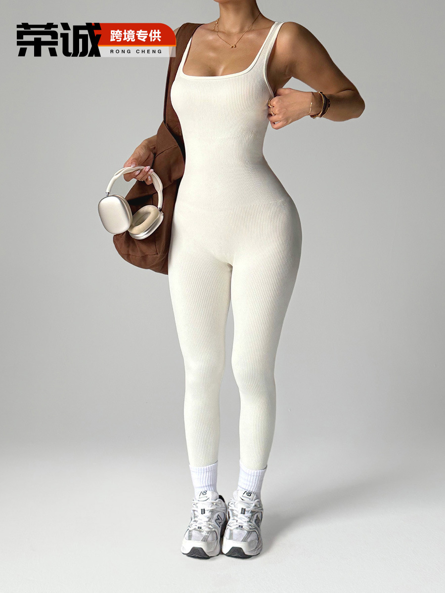 Женский спортивный комбинезон для йоги и фитнеса в европейском и американском стиле, ребристый, с открытой спиной, для активного отдыха