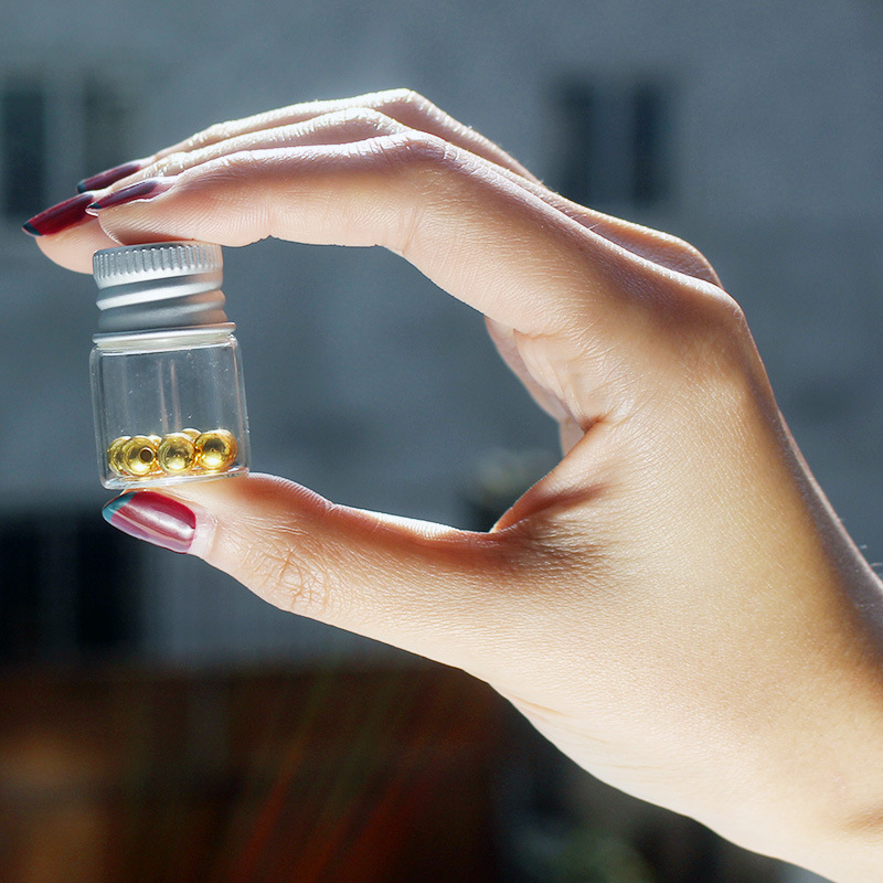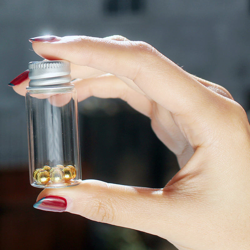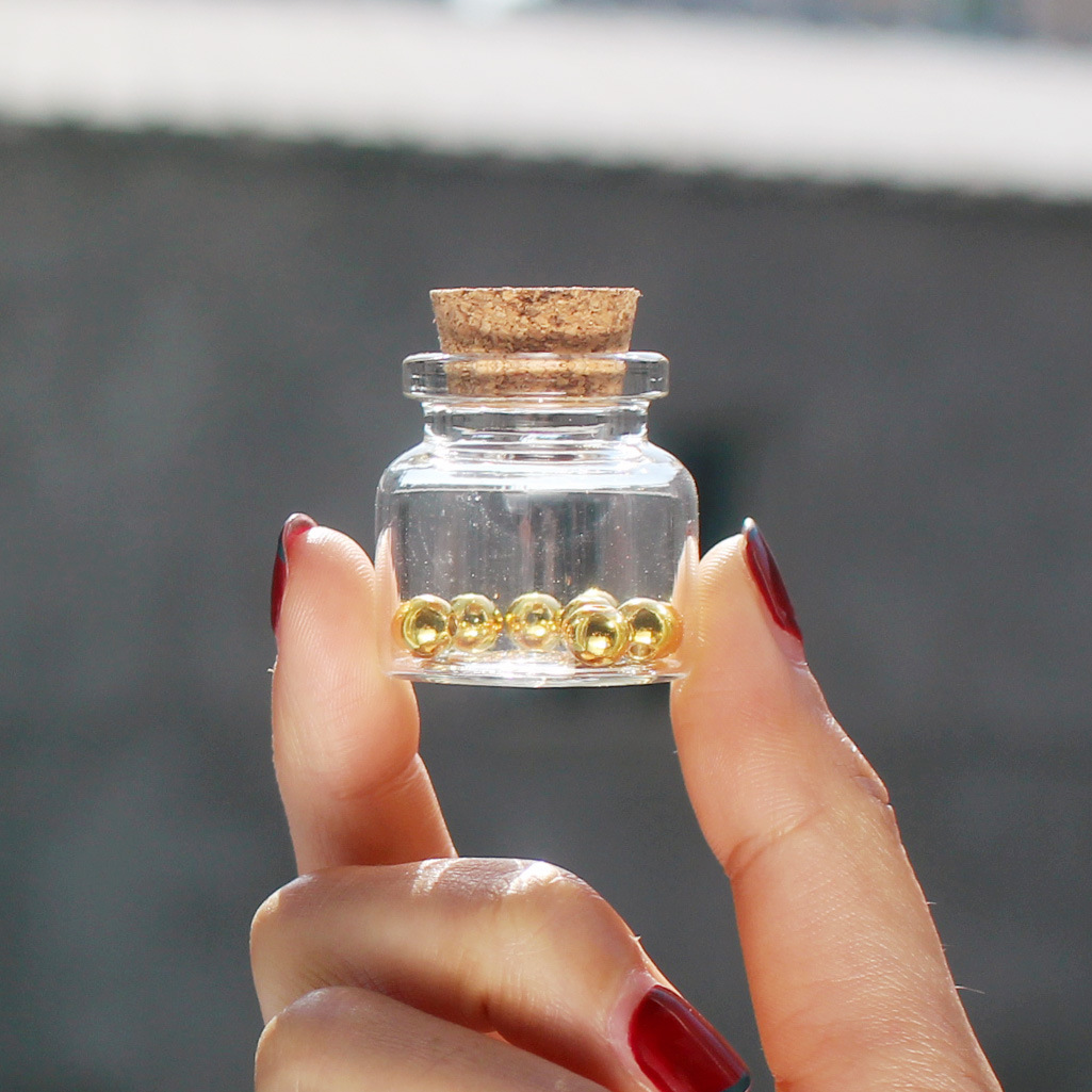 Бутылка для хранения золотых бобов Маленькая стеклянная бутылка для золотых бобов Прозрачная бутылка для хранения золотых бобов Коллекция золотых бусин