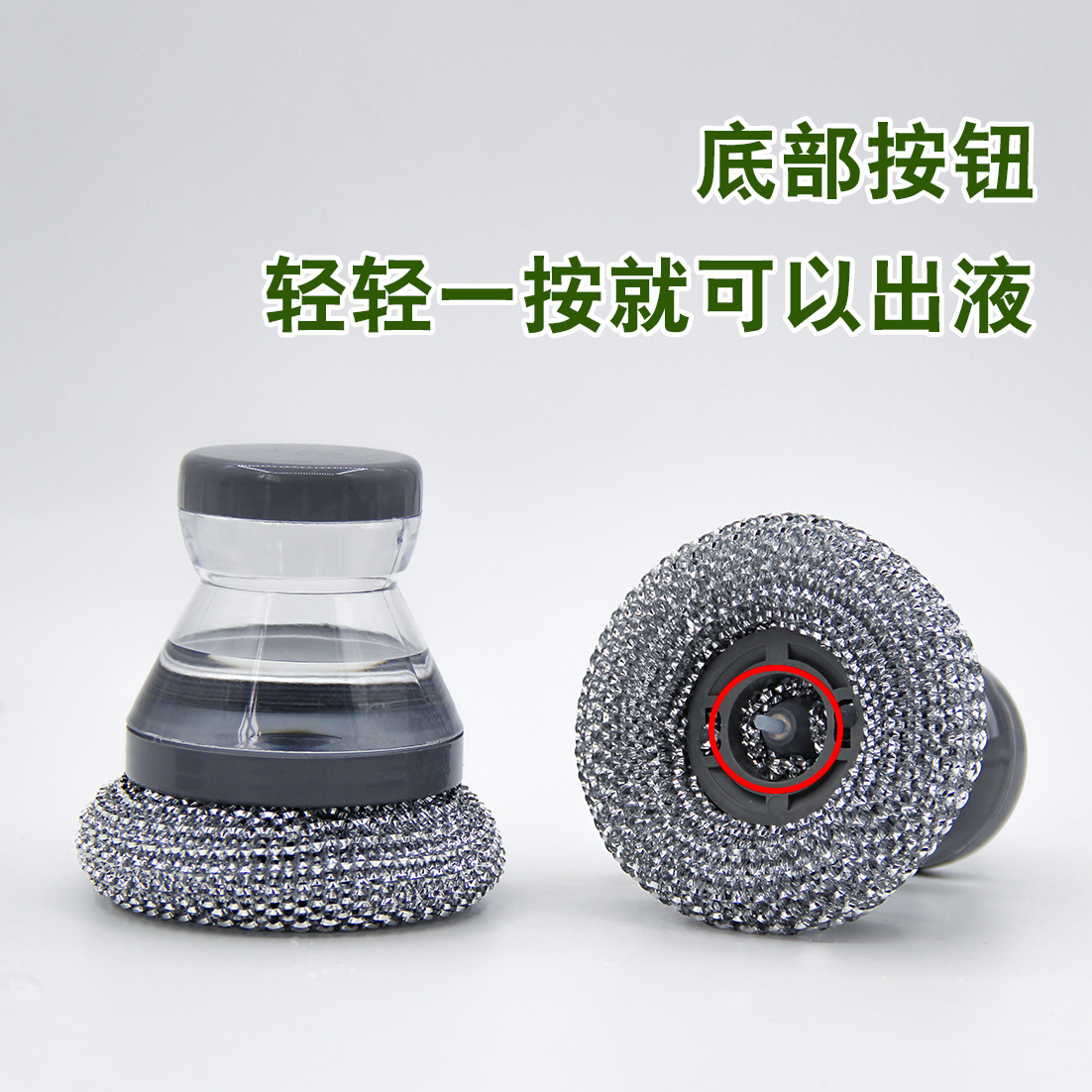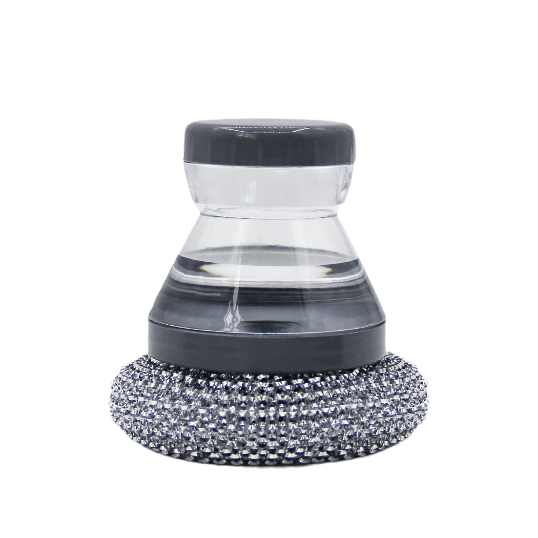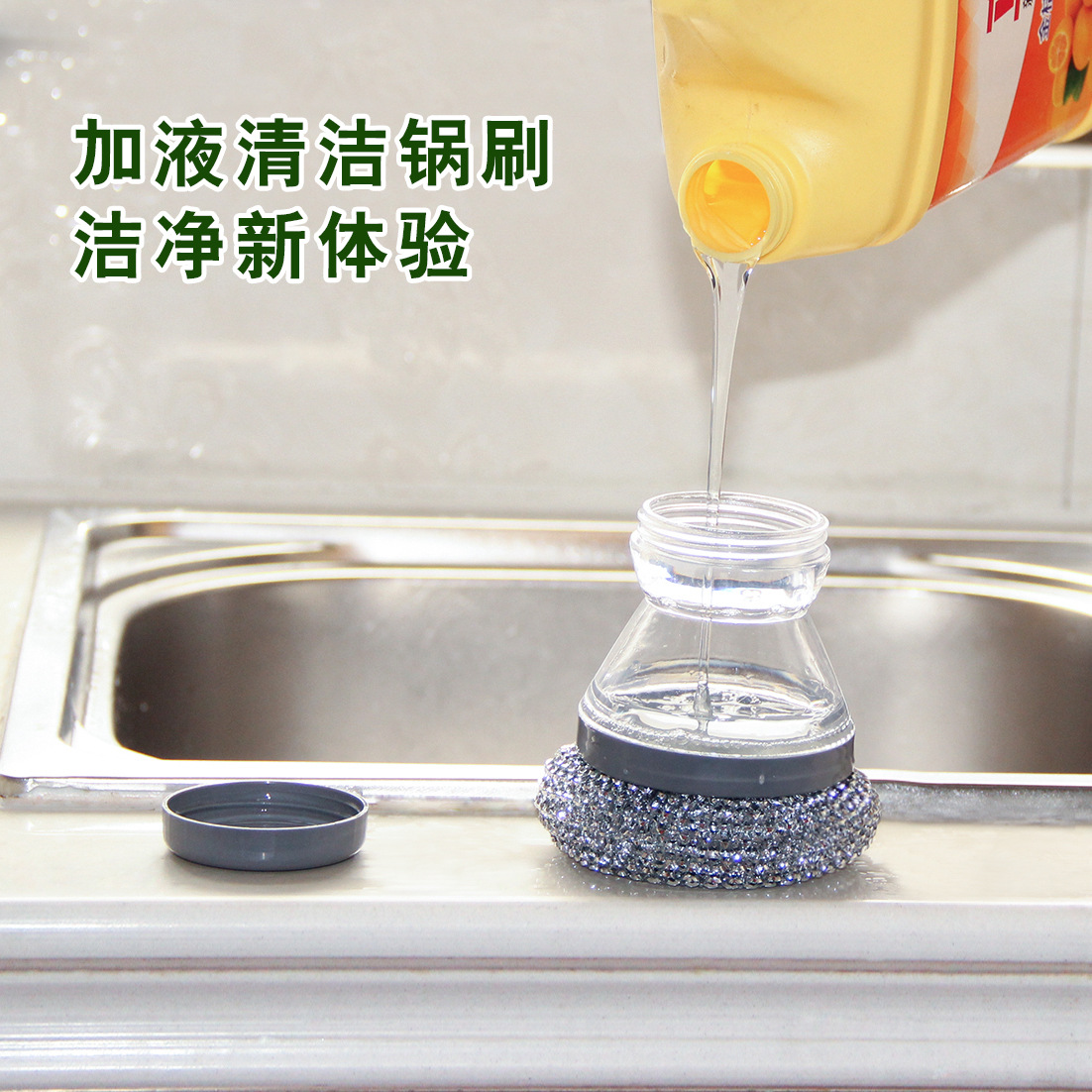 Щетка для чистки кастрюль с дозатором жидкости, кухонный чистящий инструмент, шарик для чистки кастрюль, не повреждает кастрюли, не ржавеет и не повреждает дно кастрюль.