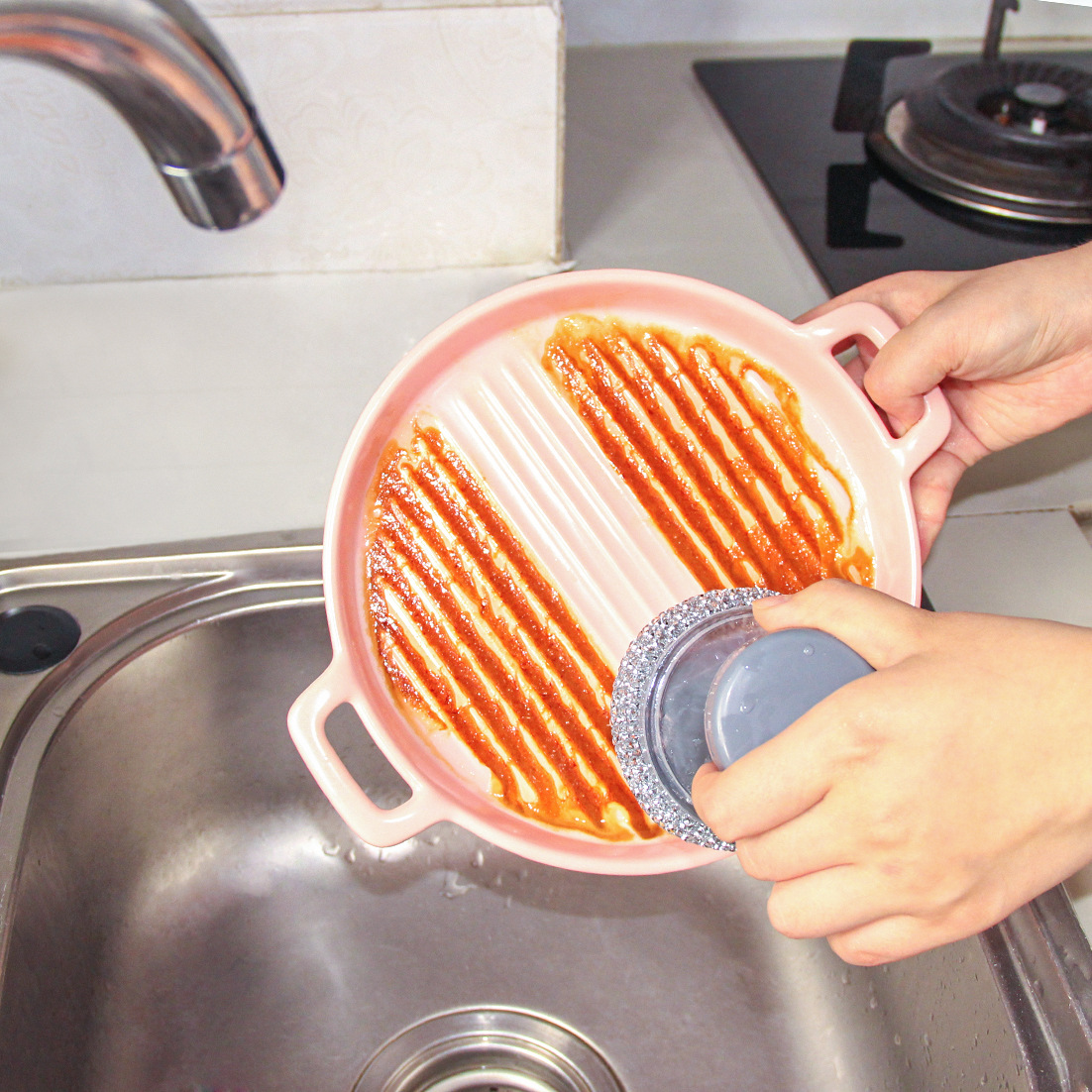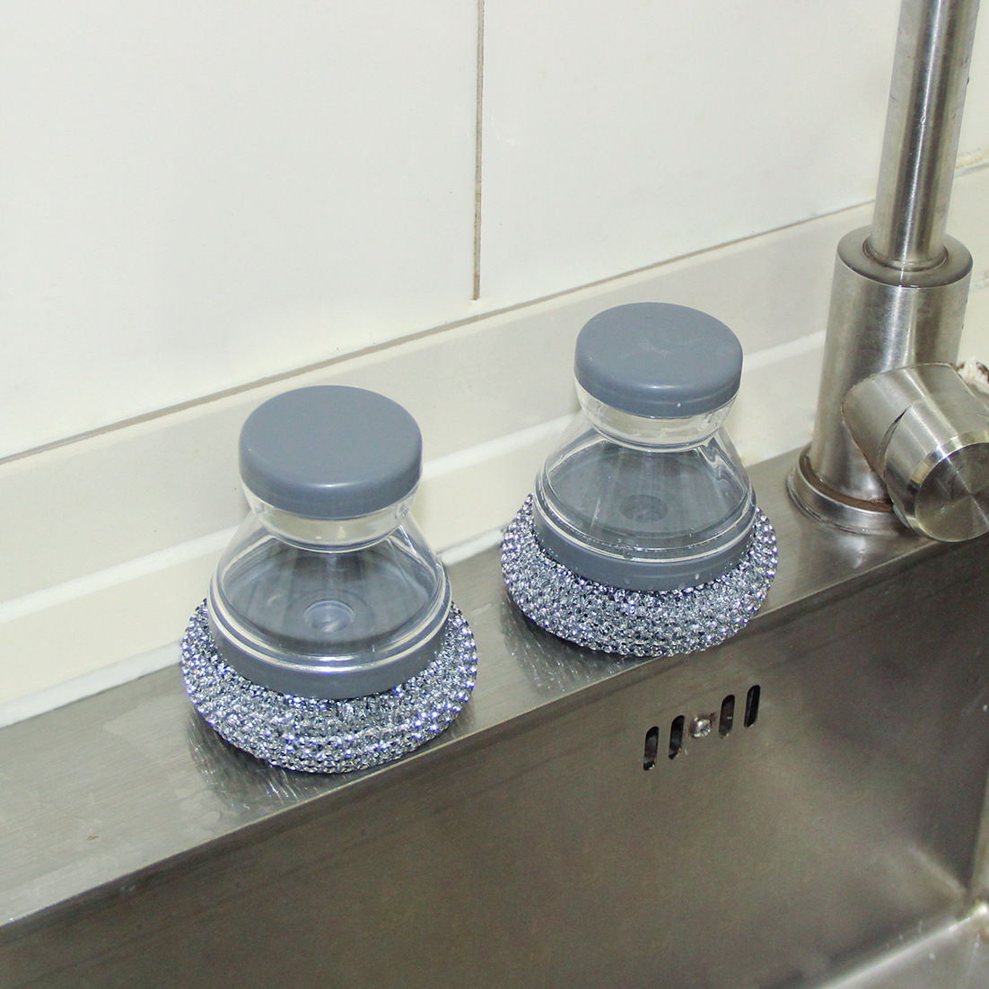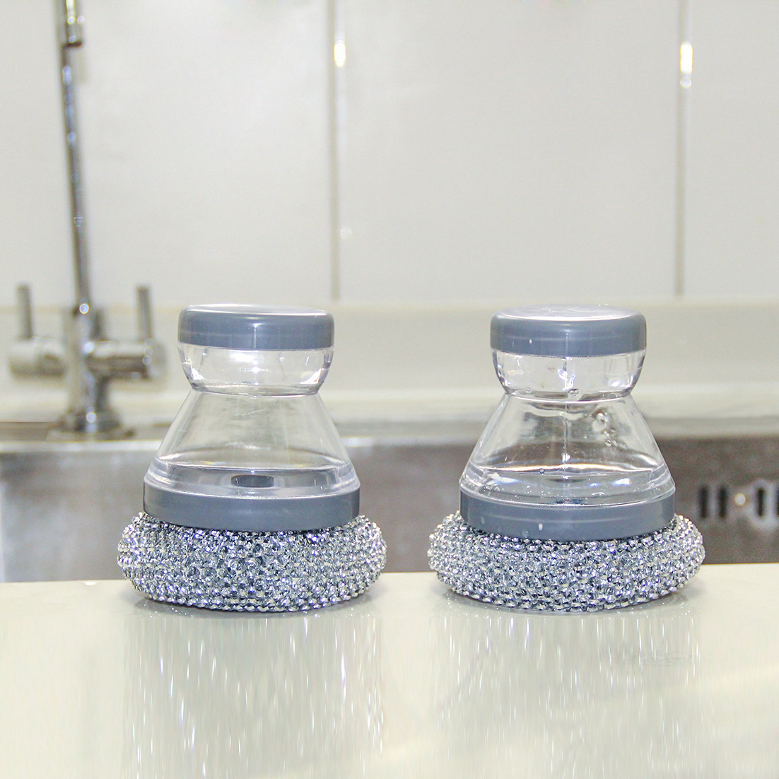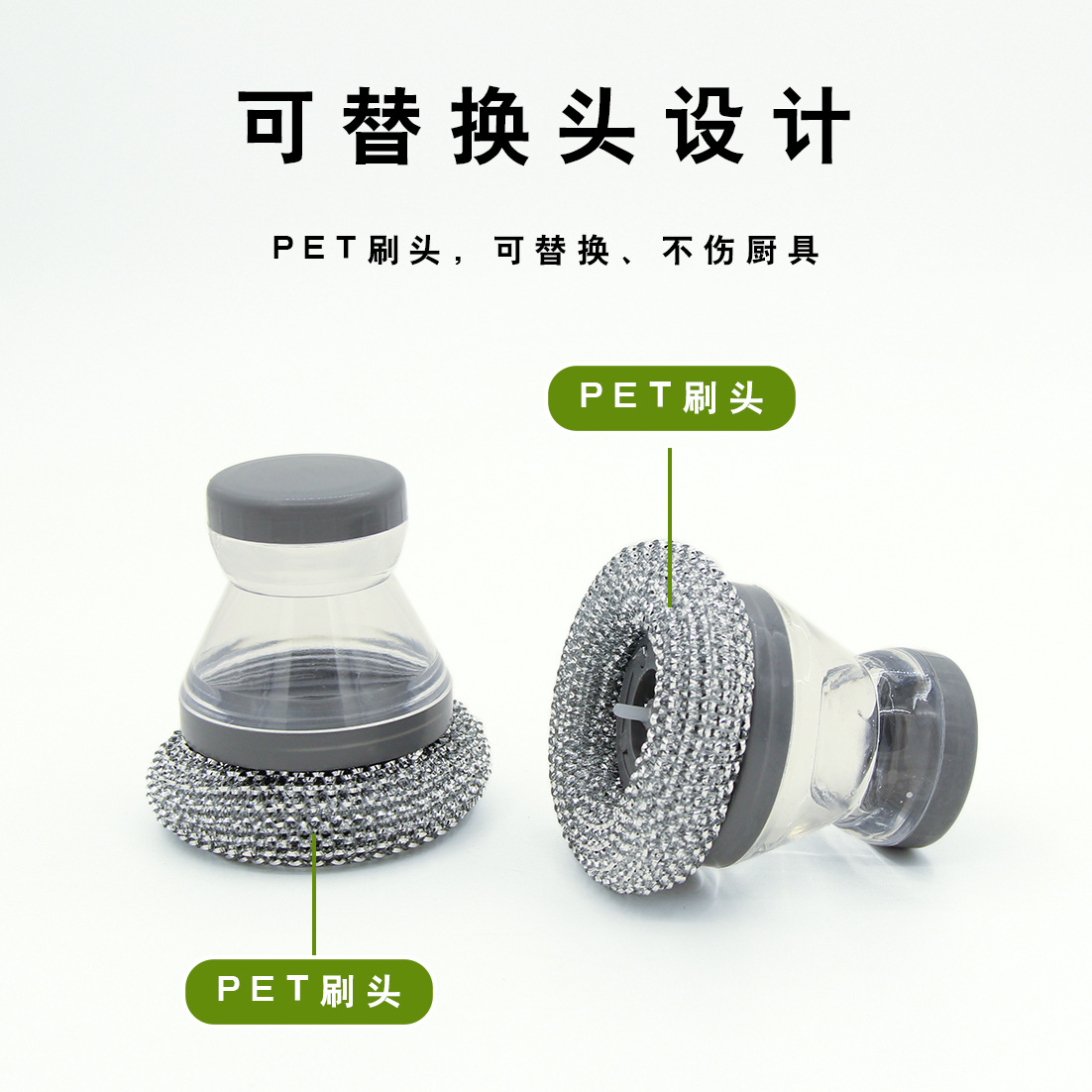 Щетка для чистки кастрюль с дозатором жидкости, кухонный чистящий инструмент, шарик для чистки кастрюль, не повреждает кастрюли, не ржавеет и не повреждает дно кастрюль.